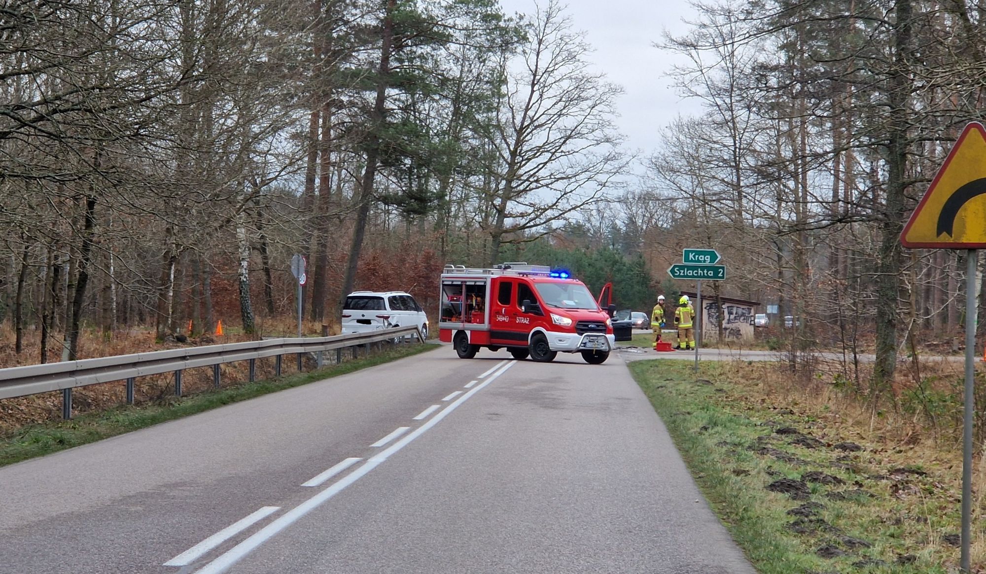 - Do zderzenia dwóch pojazdów osobowych doszło w miejscowości Krąg, dokładanie jest to skrzyżowanie z Kręga na Szlachtę, bardzo blisko leśniczówki Zielony Dół w nadleśnictwie Woziwoda. Tam doszło do zderzenia czołowo-bocznego. Łącznie w pojazdach znajdowały się 3 osoby. Jedna z nich została poszkodowana. W tej chwili została przekazana zespołowi ratownictwa medycznego. Jest przytomna, w stanie ogólnym dobrym - relacjonuje Tygodnik Tucholski, który otrzymał informację na stanowisku kierowania w KP PSP w Tucholi około godz. 12:00.