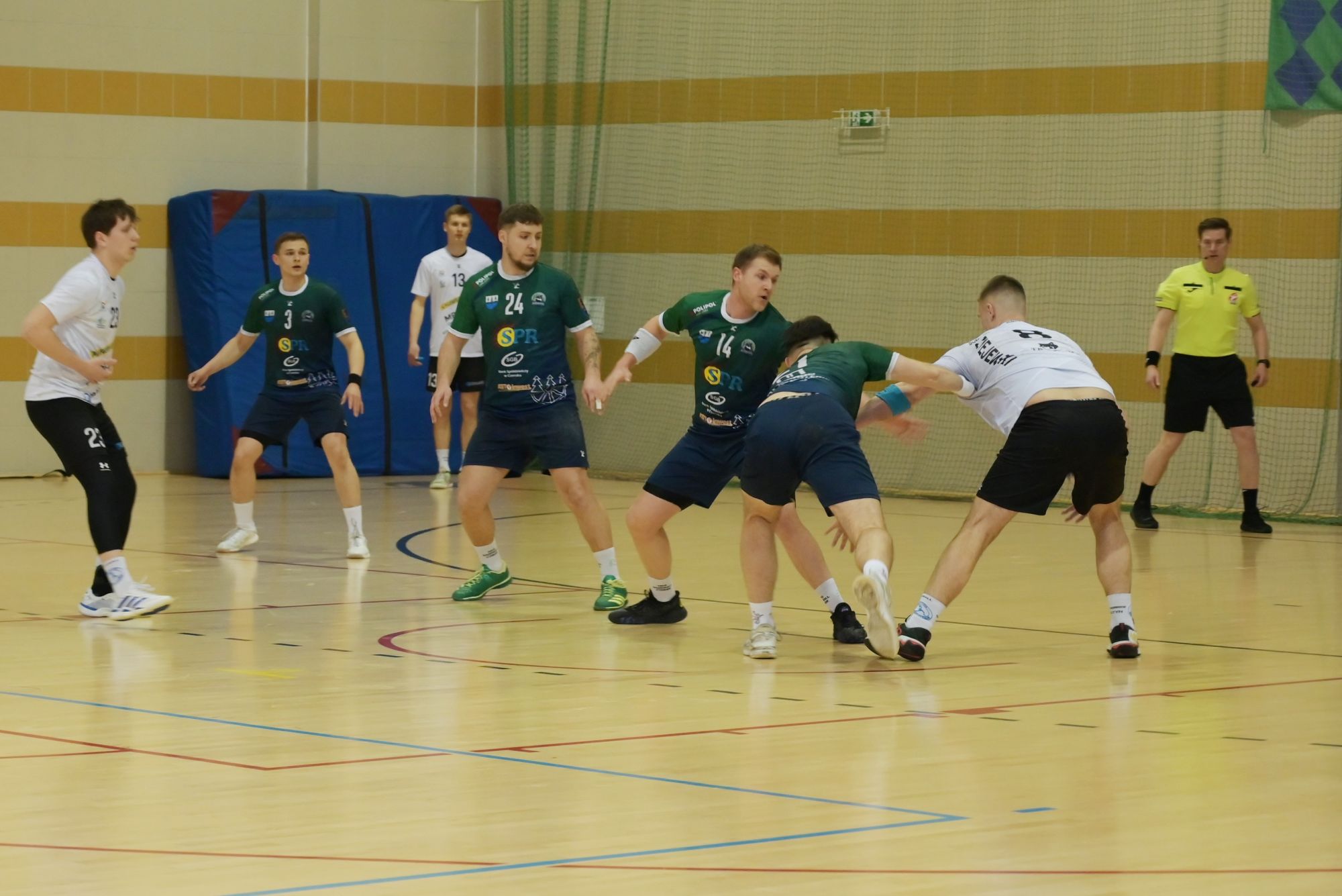 Od pierwszych minut oba zespoły pokazały, że stawką meczu jest nie tylko zwycięstwo, ale także bezpośrednia walka o przysłowiowe sześć punktów w tabeli. Do przerwy obie drużyny szły łeb w łeb – wynik 16:16 doskonale odzwierciedlał wyrównaną walkę na parkiecie.