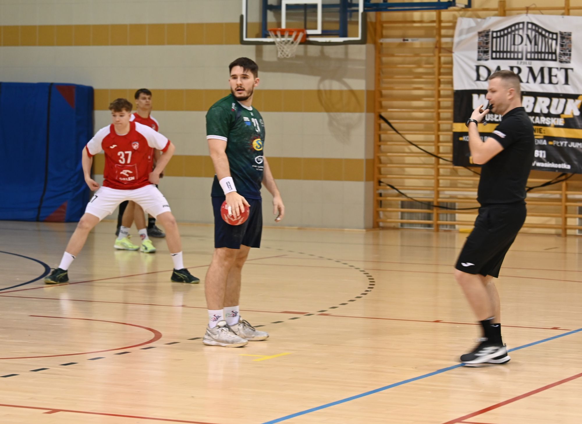 Liderem naszego zespołu był fenomenalny Maksymilian Linda, który dwoił się i troił na parkiecie, kończąc mecz z dorobkiem 11 bramek. Dzielnie wspierali go Szymon Makowiecki (5) oraz Karol Radecki (5). Z kontrataków i rzutów karnych nie mylił się Łukasz Krasucki (5), a skutecznie kończył akcje nasz obrotowy Szymon Scharmach (4). Bardzo dobrą zmianę dał również Jakub Przedpełski (3), który brawurowymi akcjami indywidualnymi wniósł mnóstwo jakości do gry zespołu."