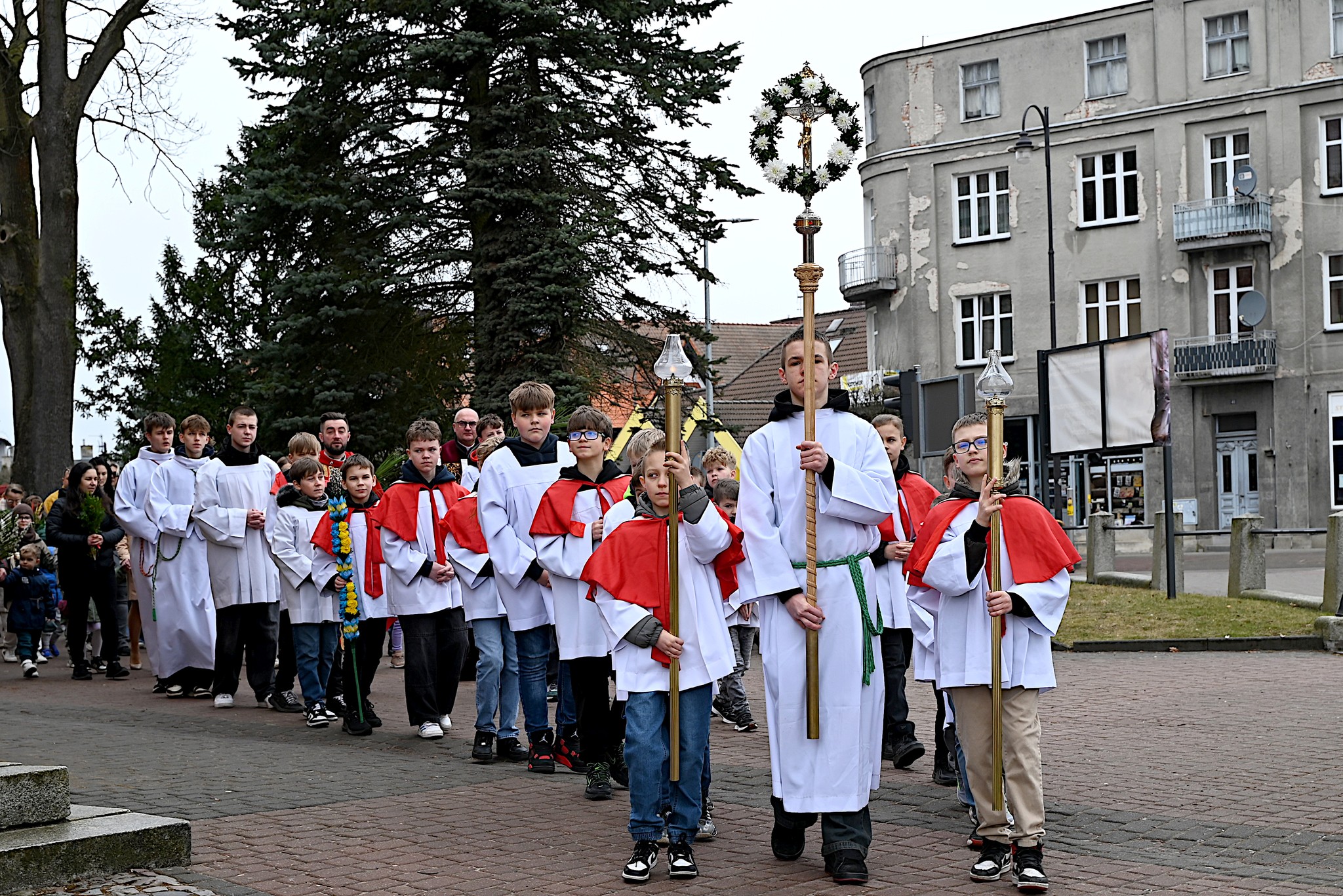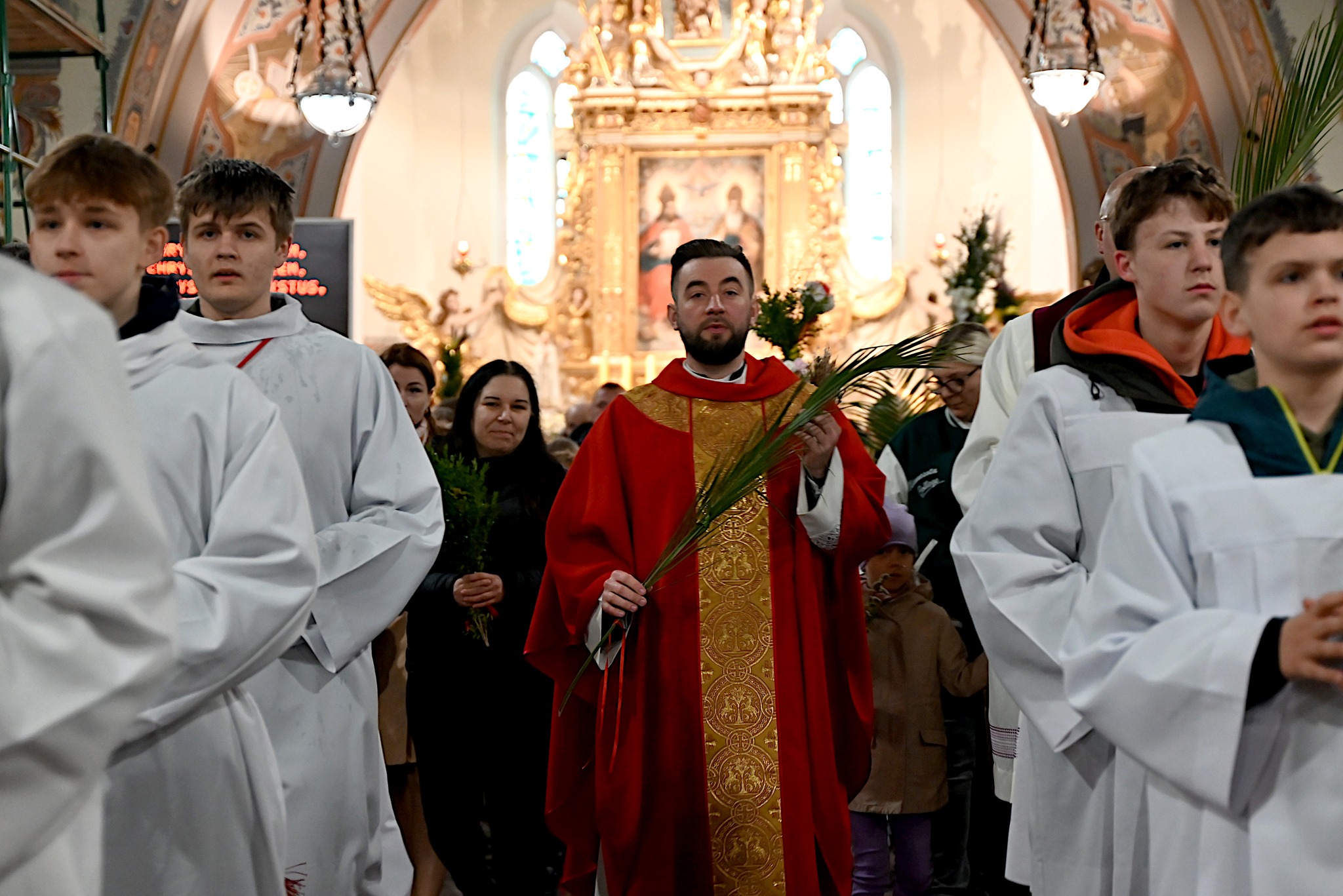 O godz. 11⁰⁰ wyruszyliśmy w uroczystej procesji z palmami, chwaląc Pana.