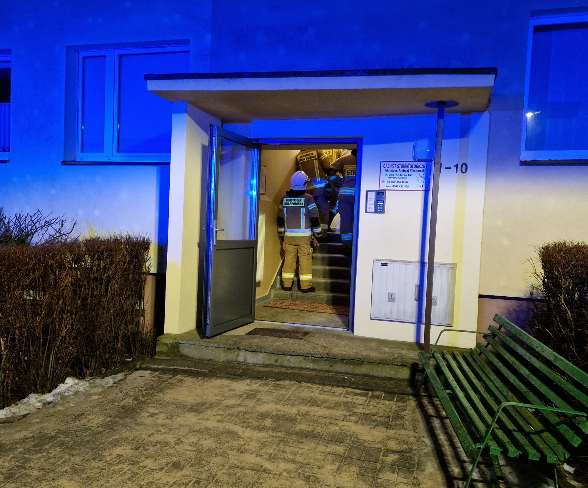 Strażacy z OSP w Czersku interweniowali w nocy z wtorku na środę (24/25.02) w bloku przy ul. Gen. Władysława Andersa. Zgłoszono wyczuwalny dym na klatce schodowej.
