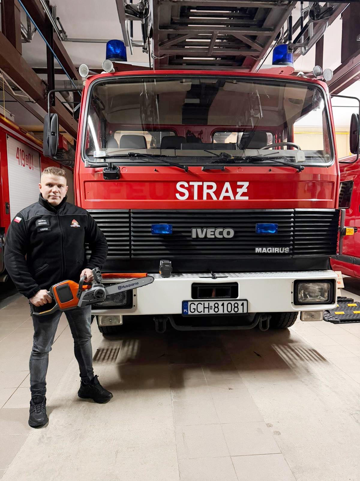 Jednostka Ochotniczej Straży Pożarnej w Czersku składa podziękowania Firmie Budowlanej Justyny i Artura Miesikowskich z Odrów za przekazanie pilarki akumulatorowej marki Husqvarna wraz z dwiema bateriami zamiennymi.