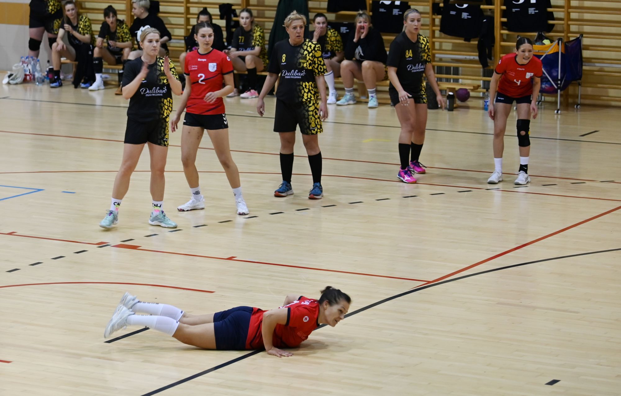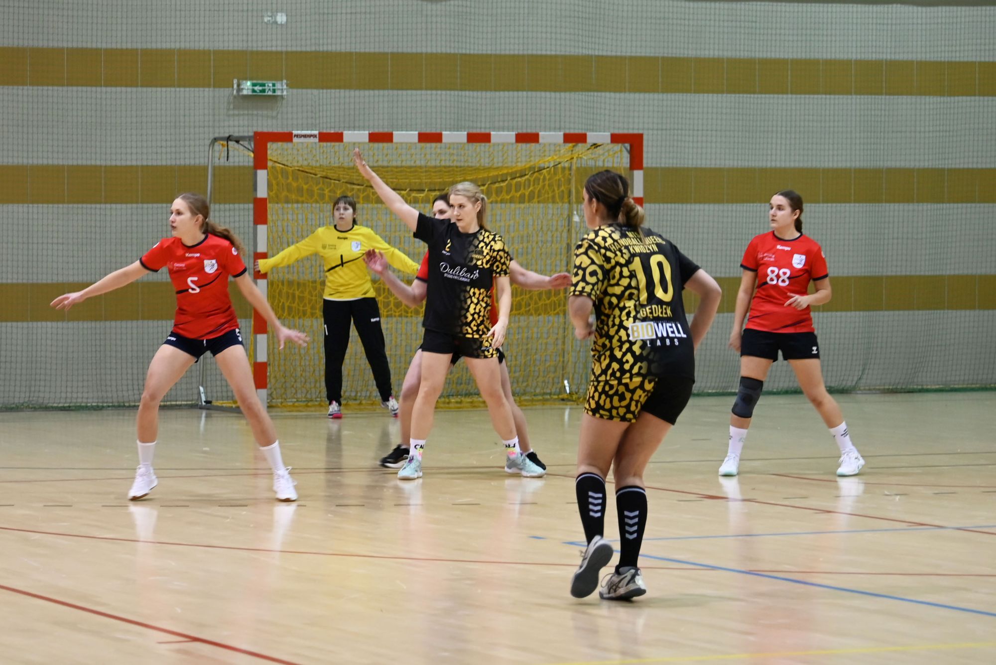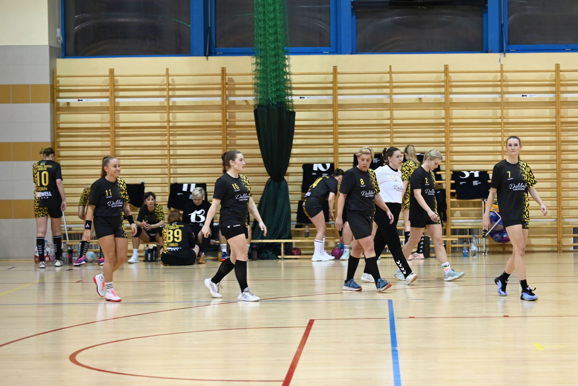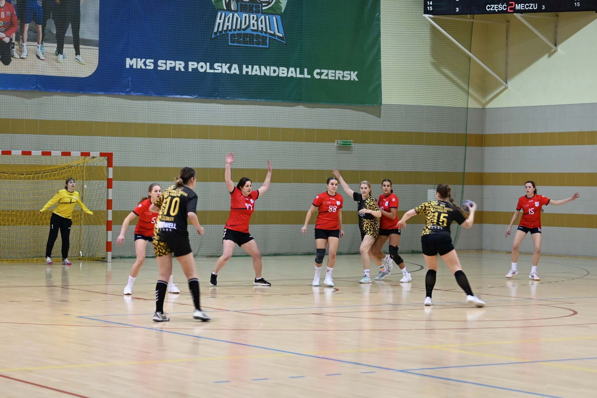 Z biegiem czasu gospodynie uspokoiły grę i zaczęły skuteczniej funkcjonować zarówno w ataku, jak i w obronie. Pierwsza połowa stała się bardziej wyrównana, a solidna postawa defensywna obu zespołów sprawiała, że różnica bramek stopniowo się zmniejszała. Do przerwy minimalnie prowadziła drużyna z Kwidzyna, schodząc do szatni przy wyniku 8:9.