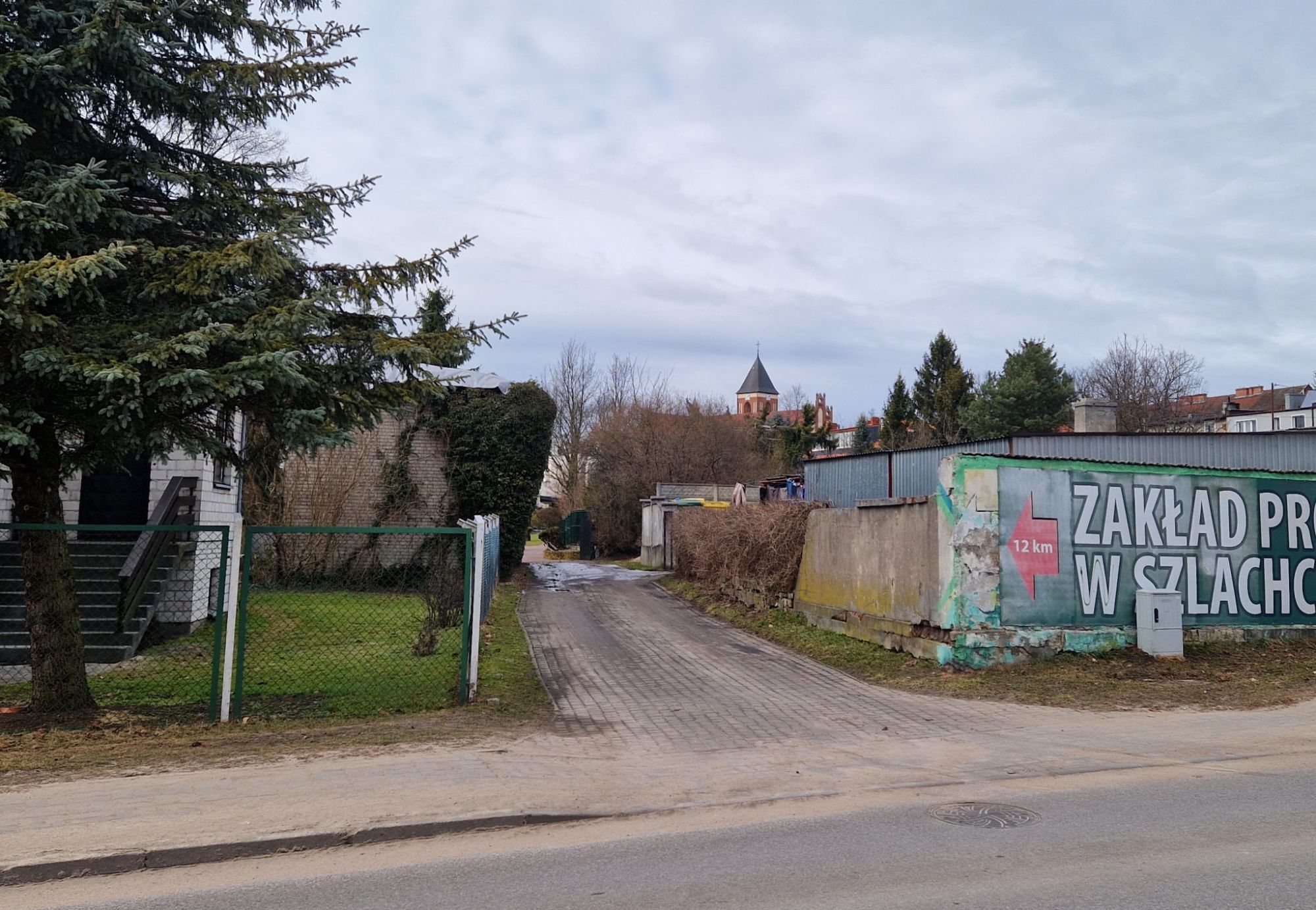 Wjazd na "tryftę" od strony ul. Szkolnej, od strony byłej fabryki mebli.