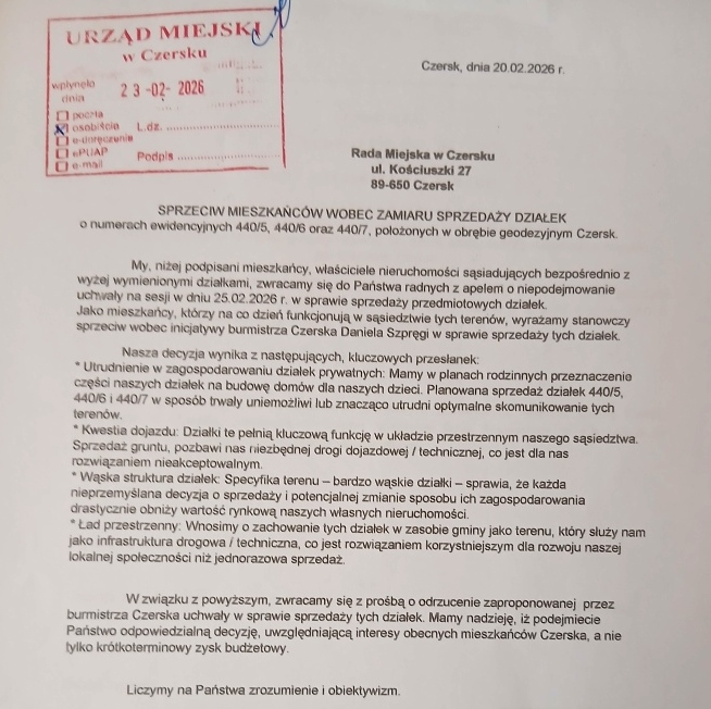 CZERSK. Spór o dojazd do posesji.
