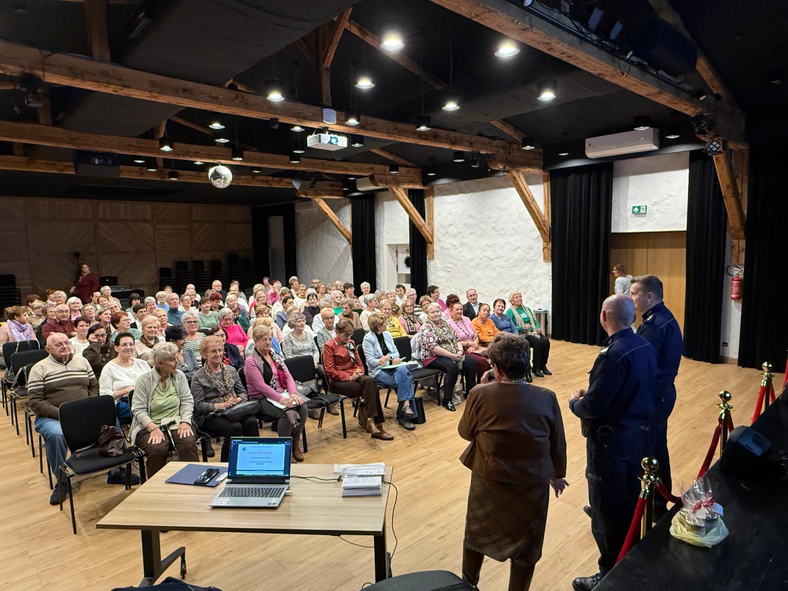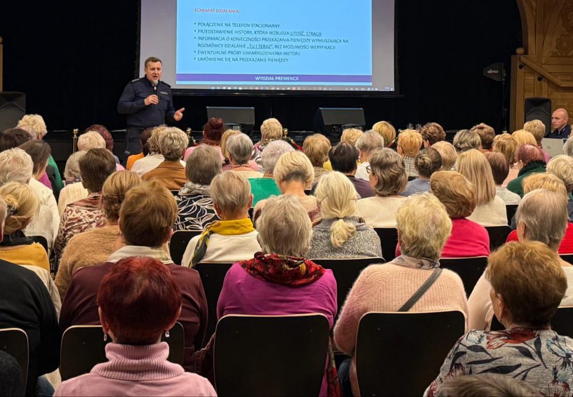 Co nas niesamowicie cieszy? Frekwencja! W spotkaniu uczestniczyło ponad 100 Seniorów! Dziękujemy za tak liczne przybycie, zaangażowanie i wszystkie pytania. Wasze bezpieczeństwo jest dla nas priorytetem! Pamiętajcie, że zawsze możecie liczyć na wsparcie lokalnej Policji. Zadzwoń, jeśli masz wątpliwości – 112!