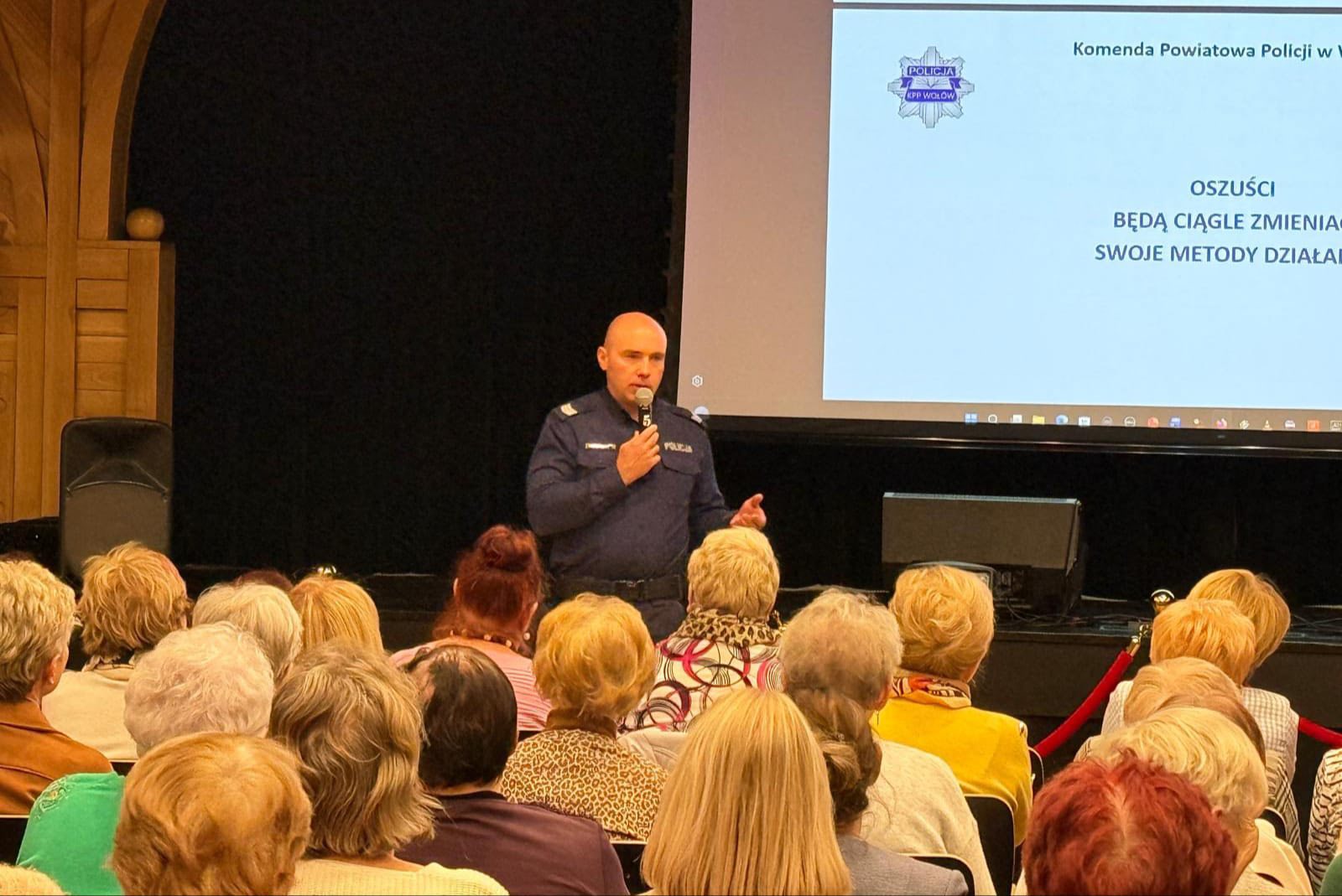 Panowie zwrócili uwagę na takie formy oszustw jak „na wnuczka”, „na policjanta”, -" a także na różne niebezpieczeństwa czyhające w internecie — od wyłudzeń, po próby kradzieży danych, o tym jak istotne jest zastrzeżenie PESELU.