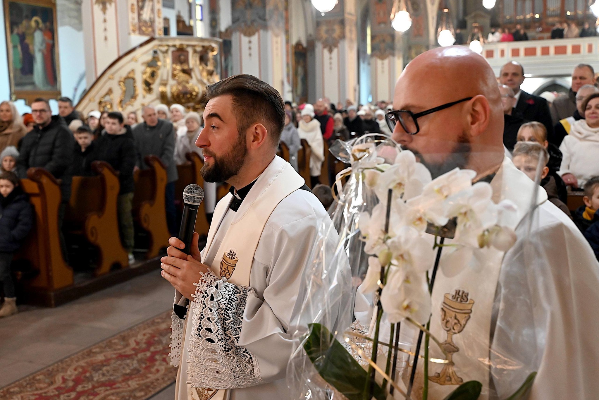 Po przekazaniu klucza do świątyni, przedstawiciele kilku wspólnot działających w parafii złożyli życzenia nowemu ks. proboszczowi. Również księża wikariusze powitali oficjalnie ks. Krzysztofa.