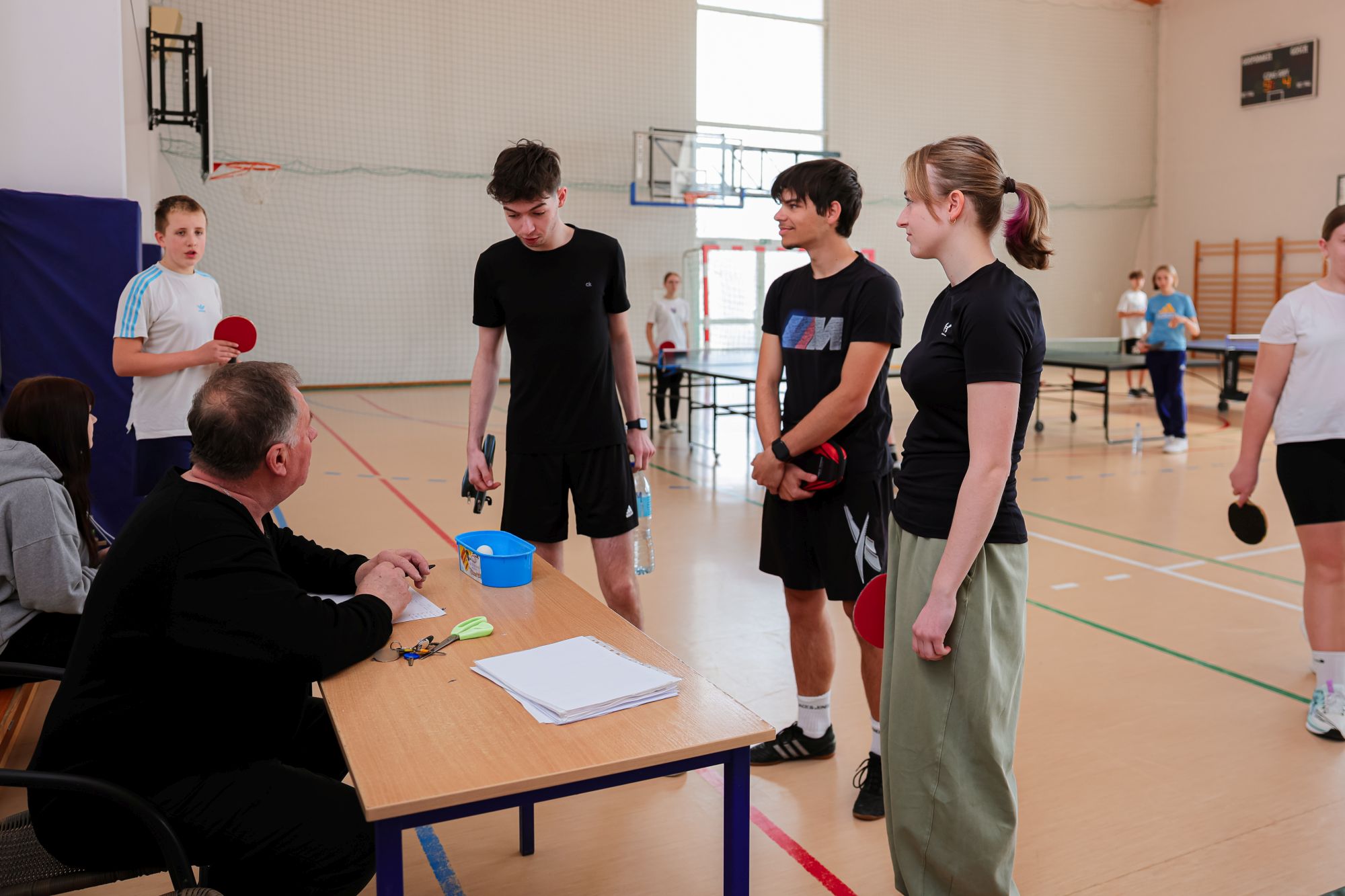 Od godziny 10:00 sala gimnastyczna Szkoły Podstawowej nr 1 tętniła sportowymi emocjami, a zawodnicy rywalizowali przy stołach o punkty w klasyfikacji turniejowej.