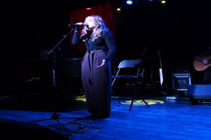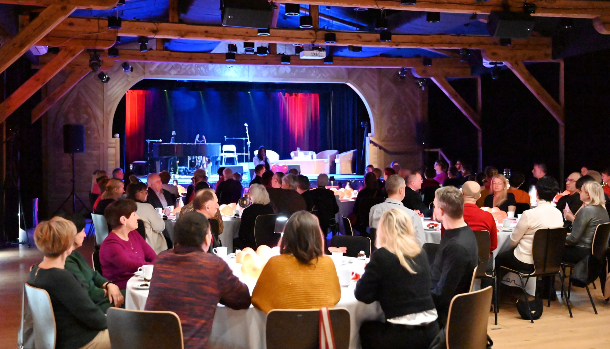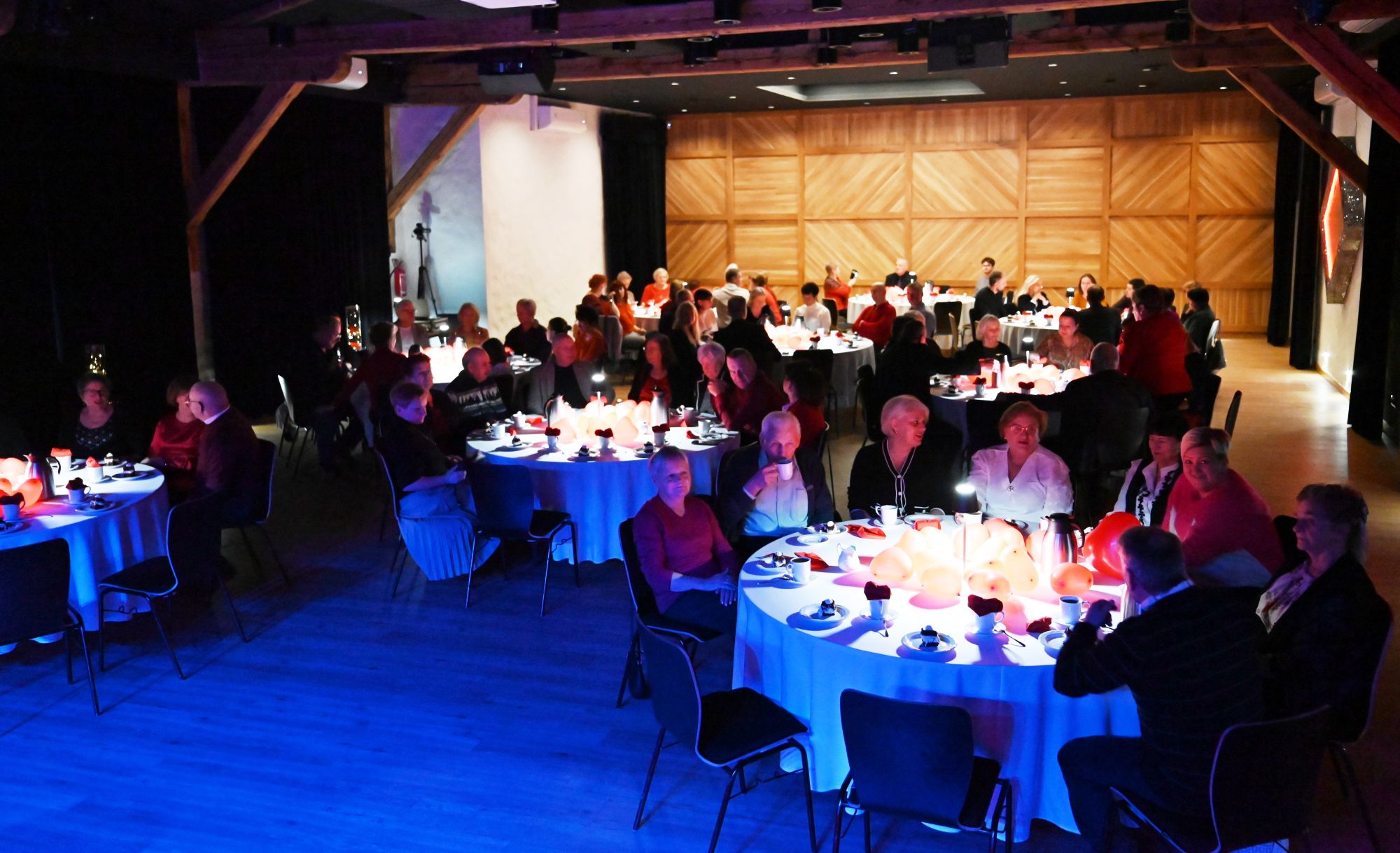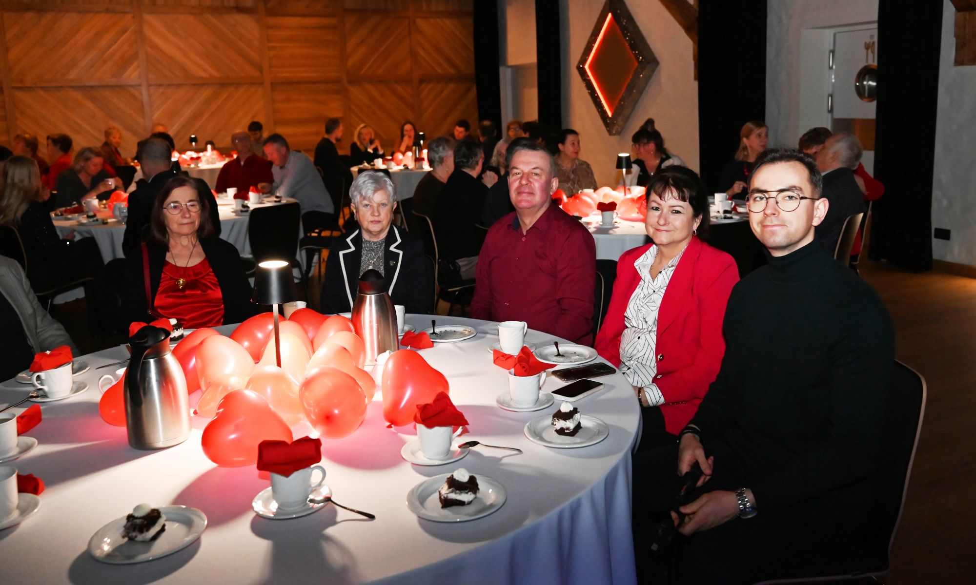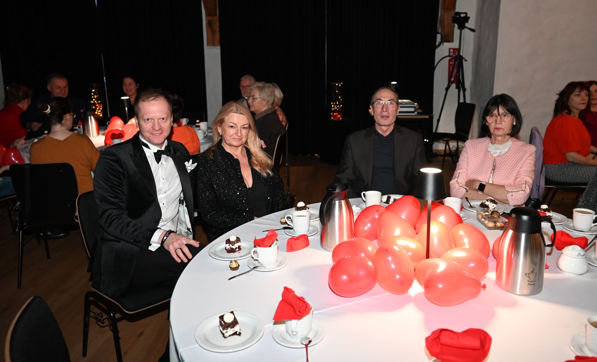 Uczestnicy wydarzenia zasiedli przy stolikach, delektując się kawą i wspólnie przeżywając muzyczne chwile w kameralnej, pełnej ciepła przestrzeni. Romantyczne brzmienia tworzyły nastrój sprzyjający rozmowom, uśmiechom i świętowaniu walentynek w spokojnej, artystycznej oprawie.