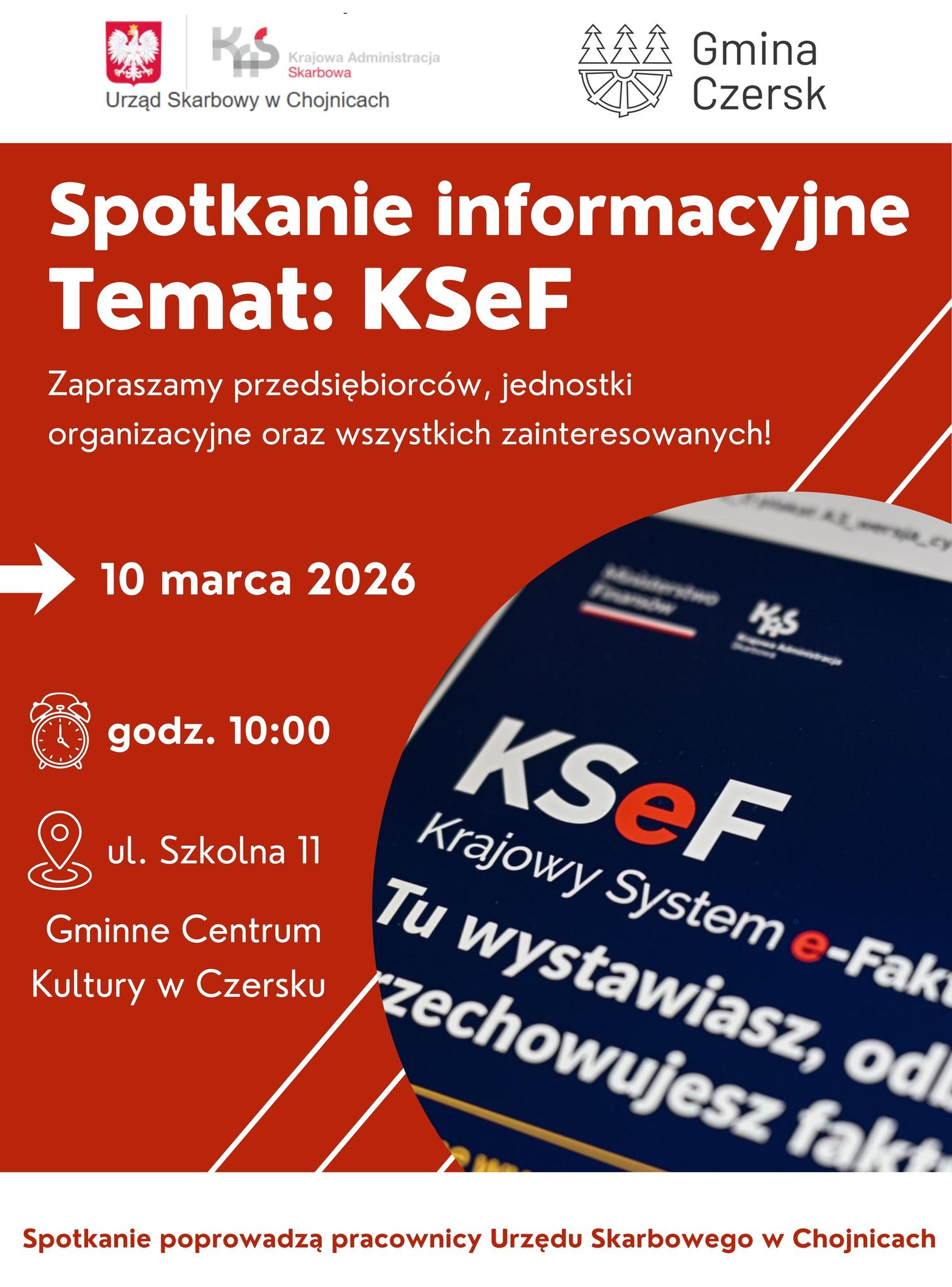 🔴 Już 10 marca 2026 r. o godz. 10:00 zapraszamy WSZYSTKICH ZAINTERESOWANYCH na spotkanie informacyjne o KSeF - Krajowym Systemie e-Faktur.