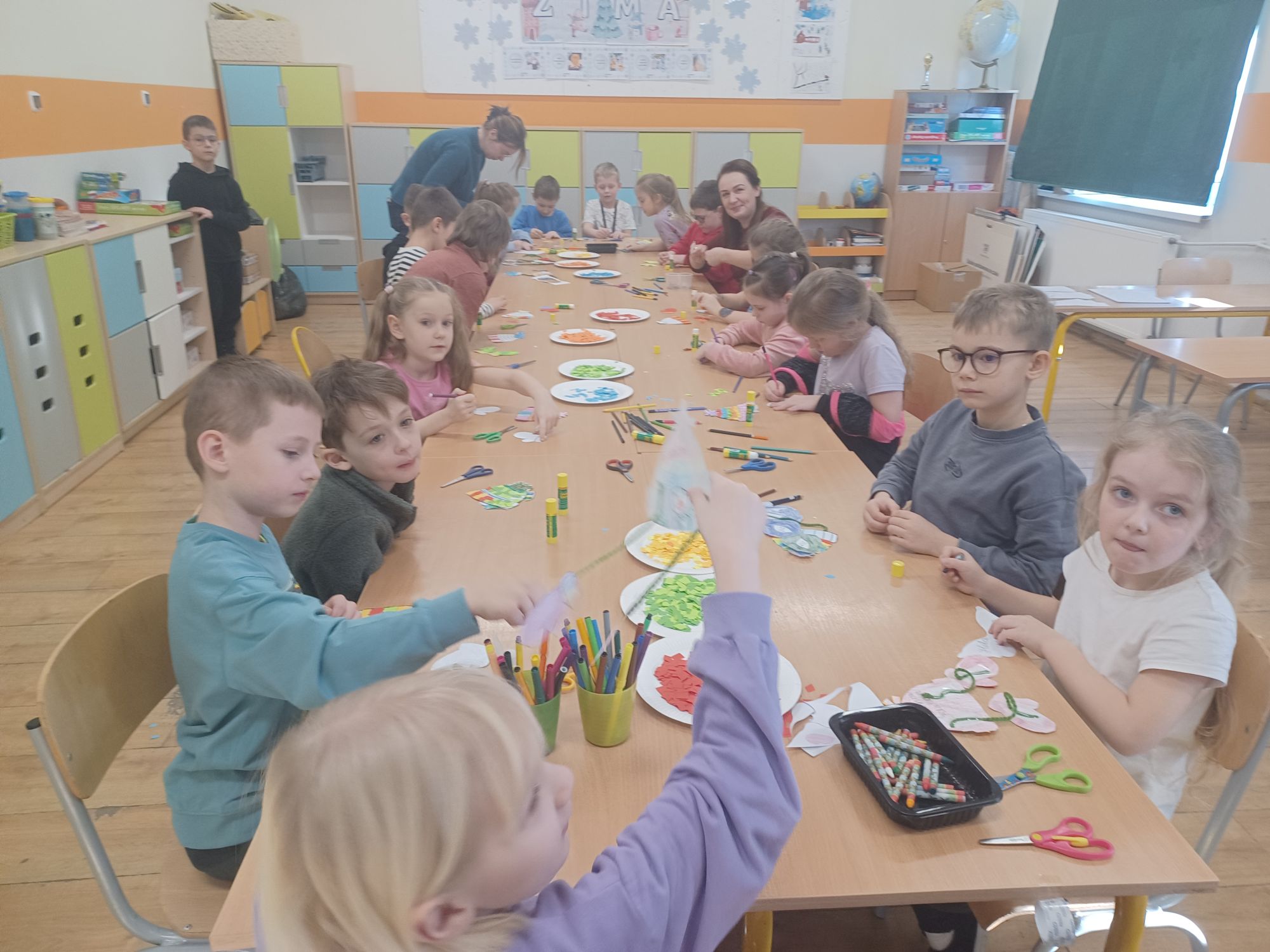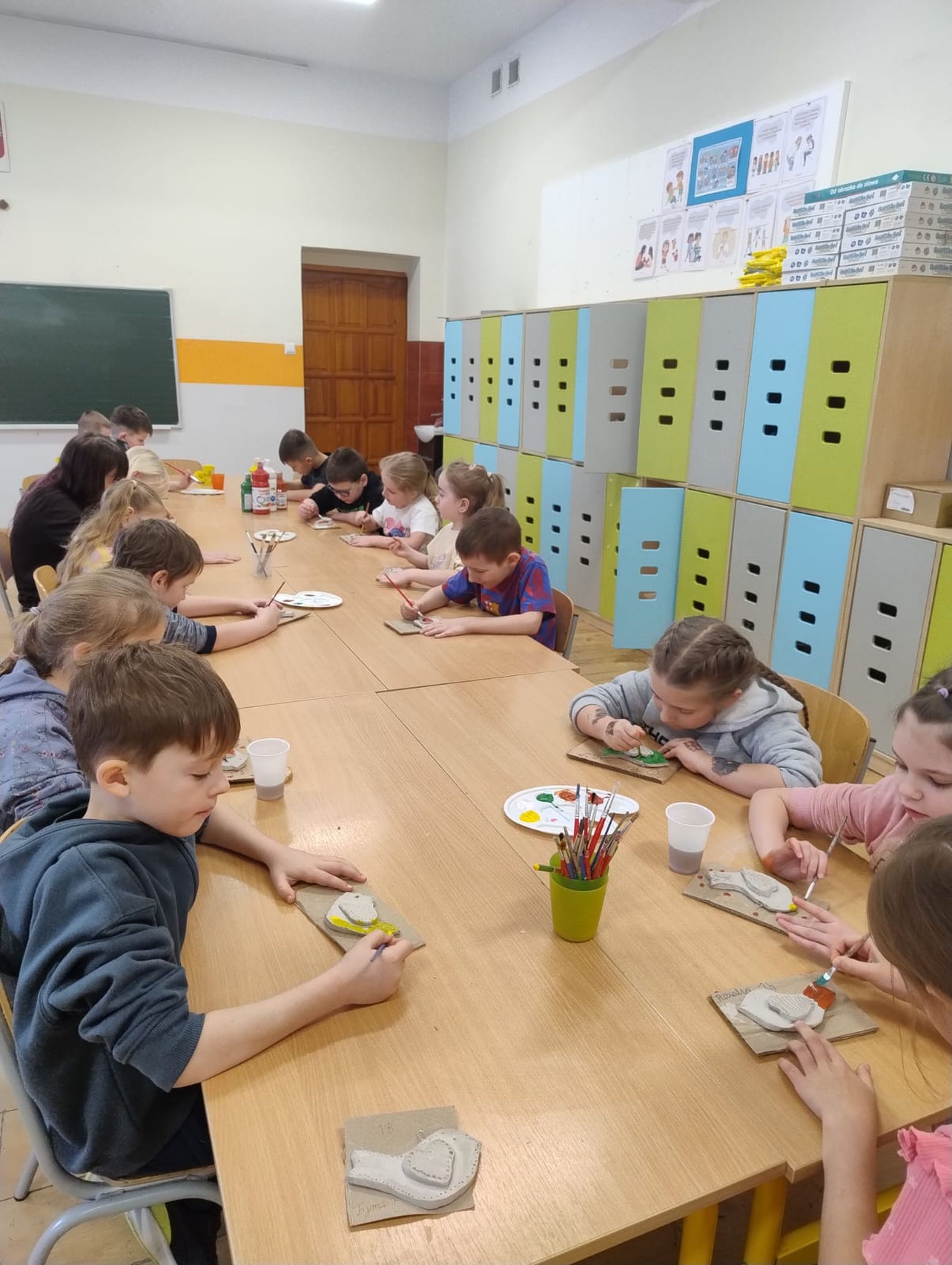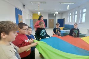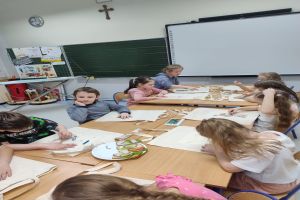 Środa upłynęła pod znakiem emocji, tańca i twórczości. Dzieci uczestniczyły w grach i zabawach psychologicznych „Poznajemy własne emocje!”, prowadzonych przez panią pedagog i psycholog. Brały również udział w warsztatach taneczno-ruchowych prowadzonych przez panią Magdalenę Nowak z Gminnego Centrum Kultury w Czersku oraz rozwijały zdolności manualne, dekorując podstawki techniką decoupage.