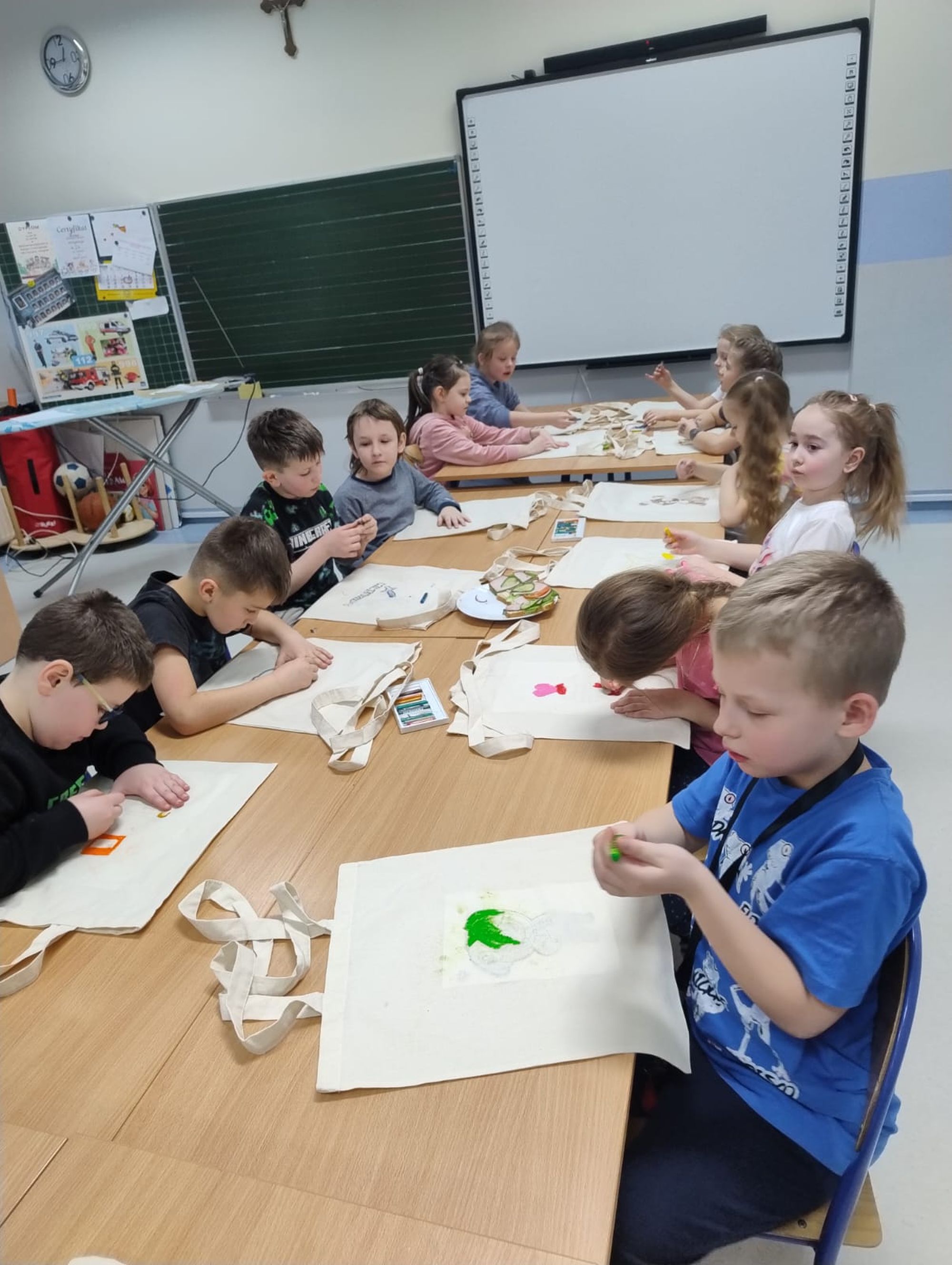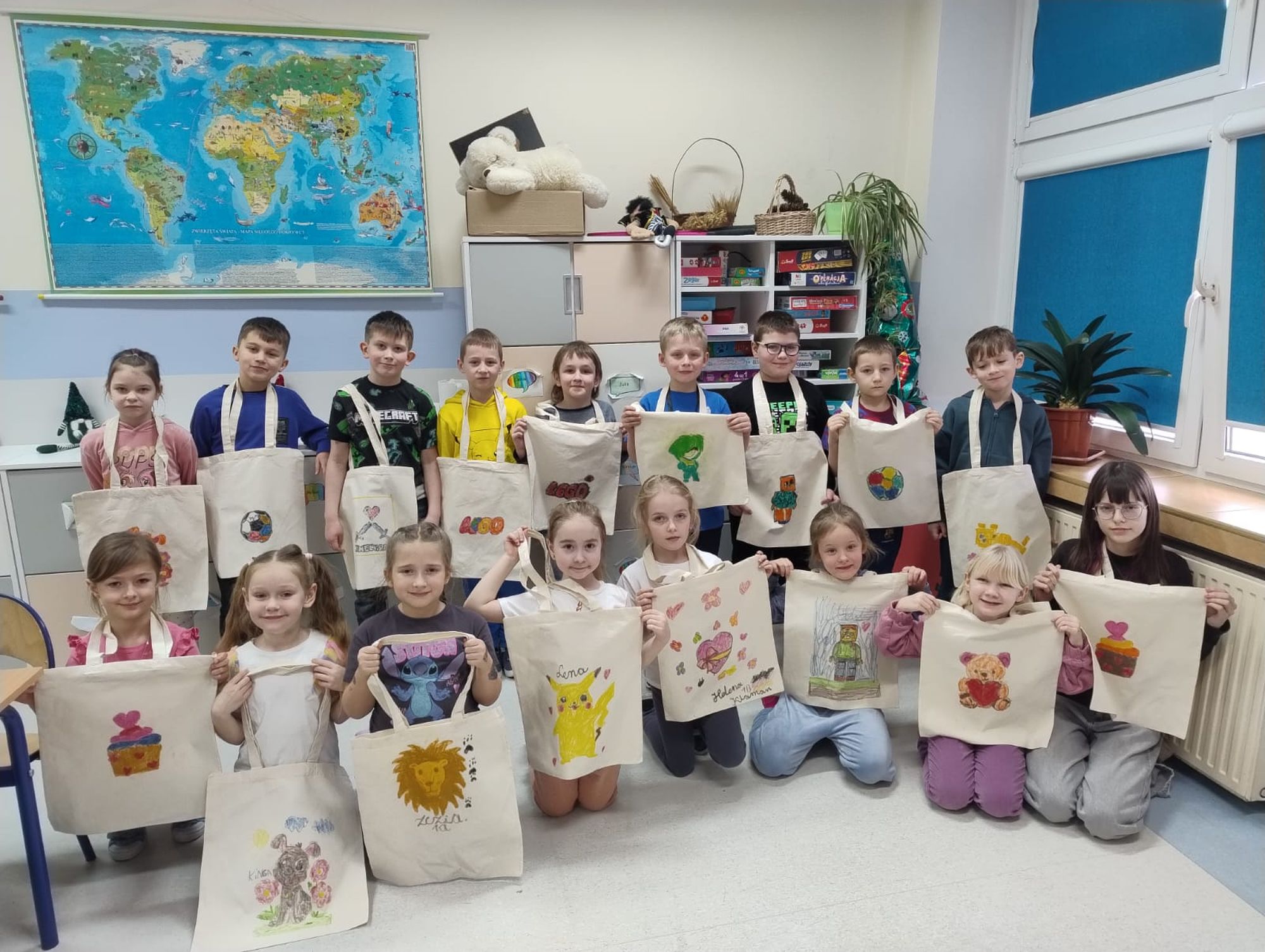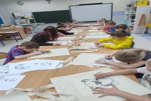 Piątek natomiast minął pod hasłem „W robotycznym i naukowym świecie”. Najmłodsi uczyli się podstaw programowania robotów Photon, a w przerwach między zajęciami ozdabiali torby ekologiczne według własnych pomysłów. Nie zabrakło także aktywności ruchowej – w hali sportowej na uczestników czekały gry i zabawy sportowe.