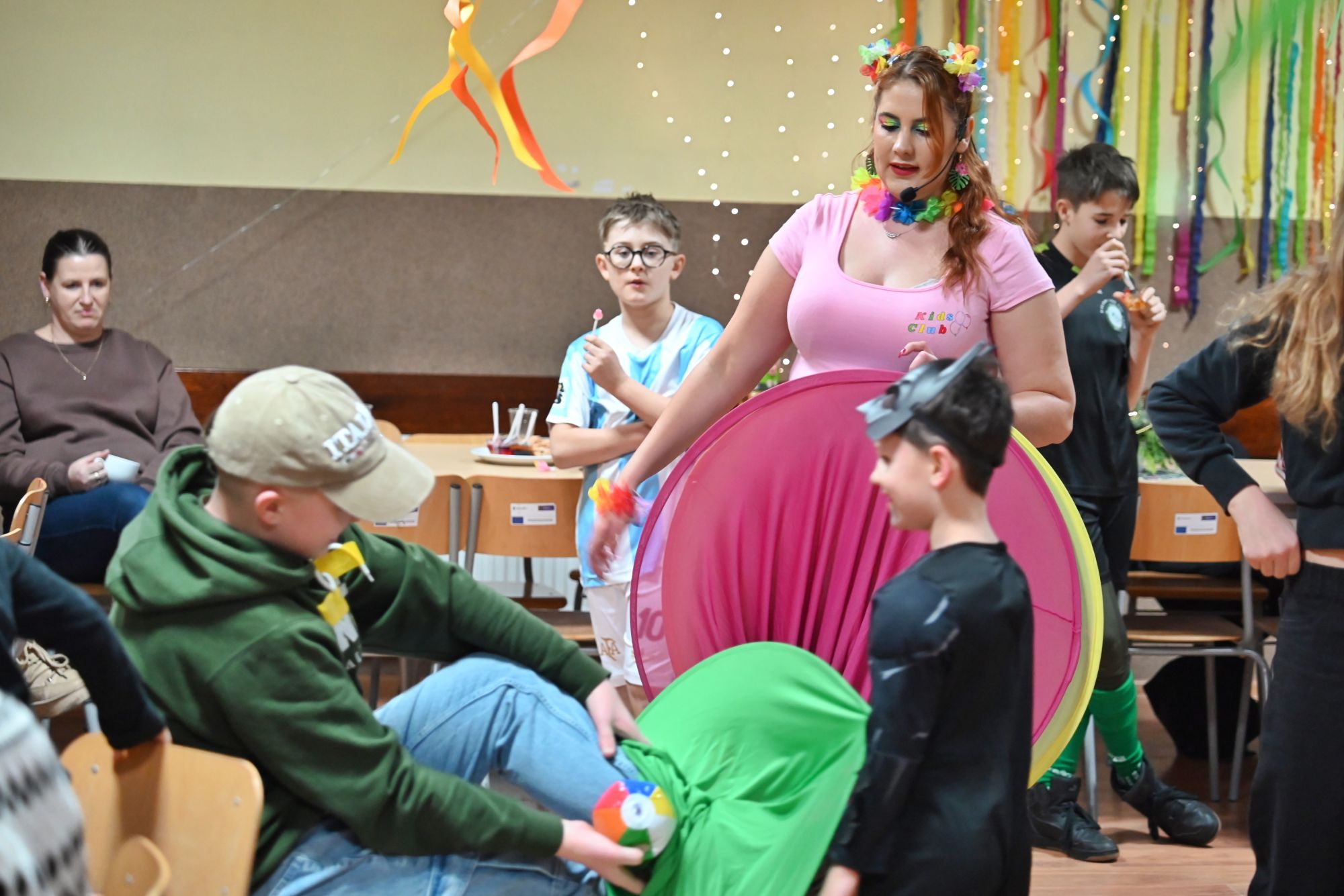 Na dzieci czekało mnóstwo atrakcji – gry, zabawy ruchowe oraz tańce, które z ogromnym zaangażowaniem prowadzili animatorzy z Kids Club. Ich energia i pomysłowość sprawiły, że młodzi goście chętnie brali udział w kolejnych zabawach, a uśmiechy nie schodziły im z twarzy.