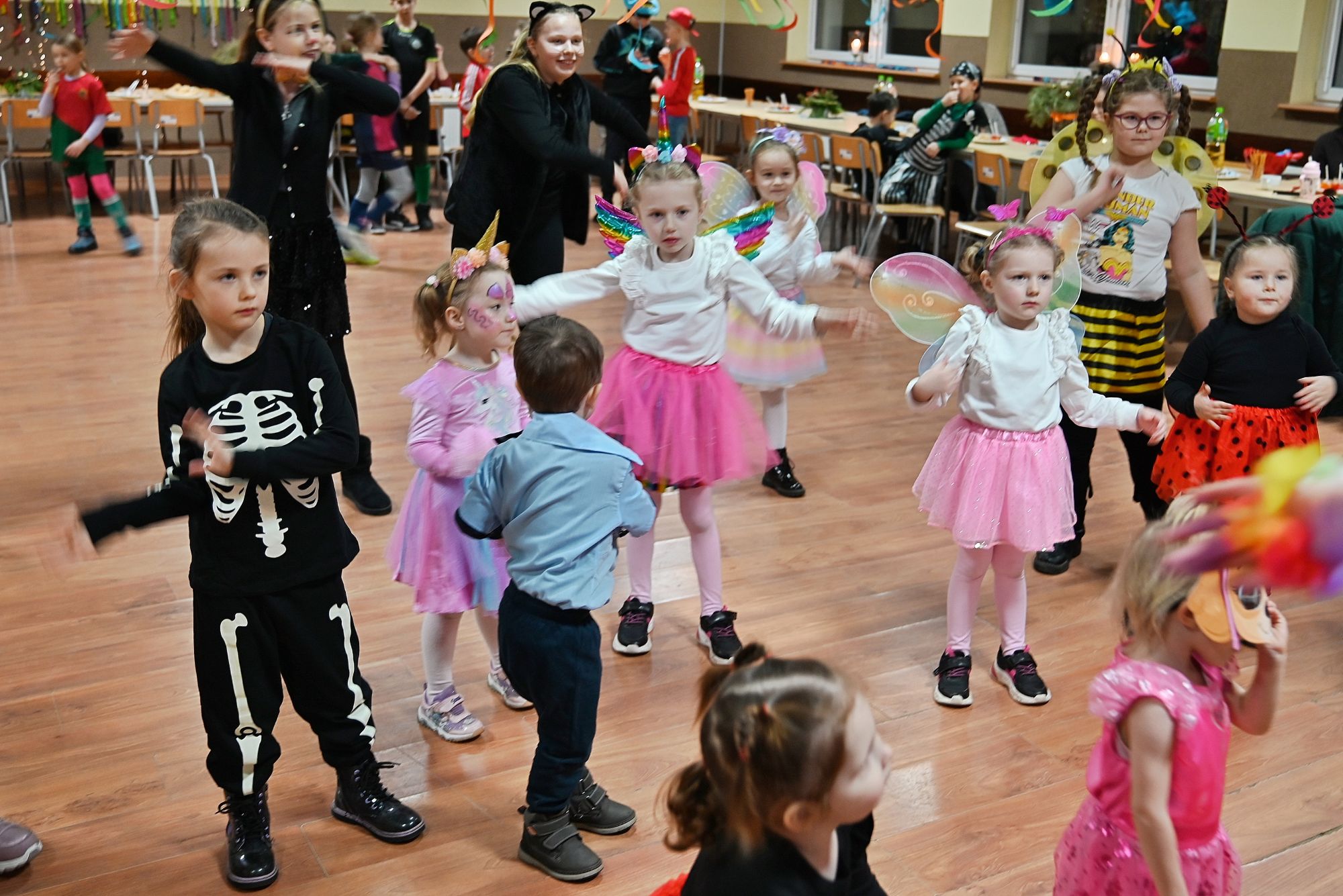 Bal Maskowy w Malachinie był wyjątkowym wydarzeniem, które na długo pozostanie w pamięci najmłodszych uczestników. Sala wiejska wypełniła się kolorami, muzyką i radosnym śmiechem dzieci, które licznie przybyły wraz z rodzicami, by wspólnie przeżyć karnawałową przygodę.