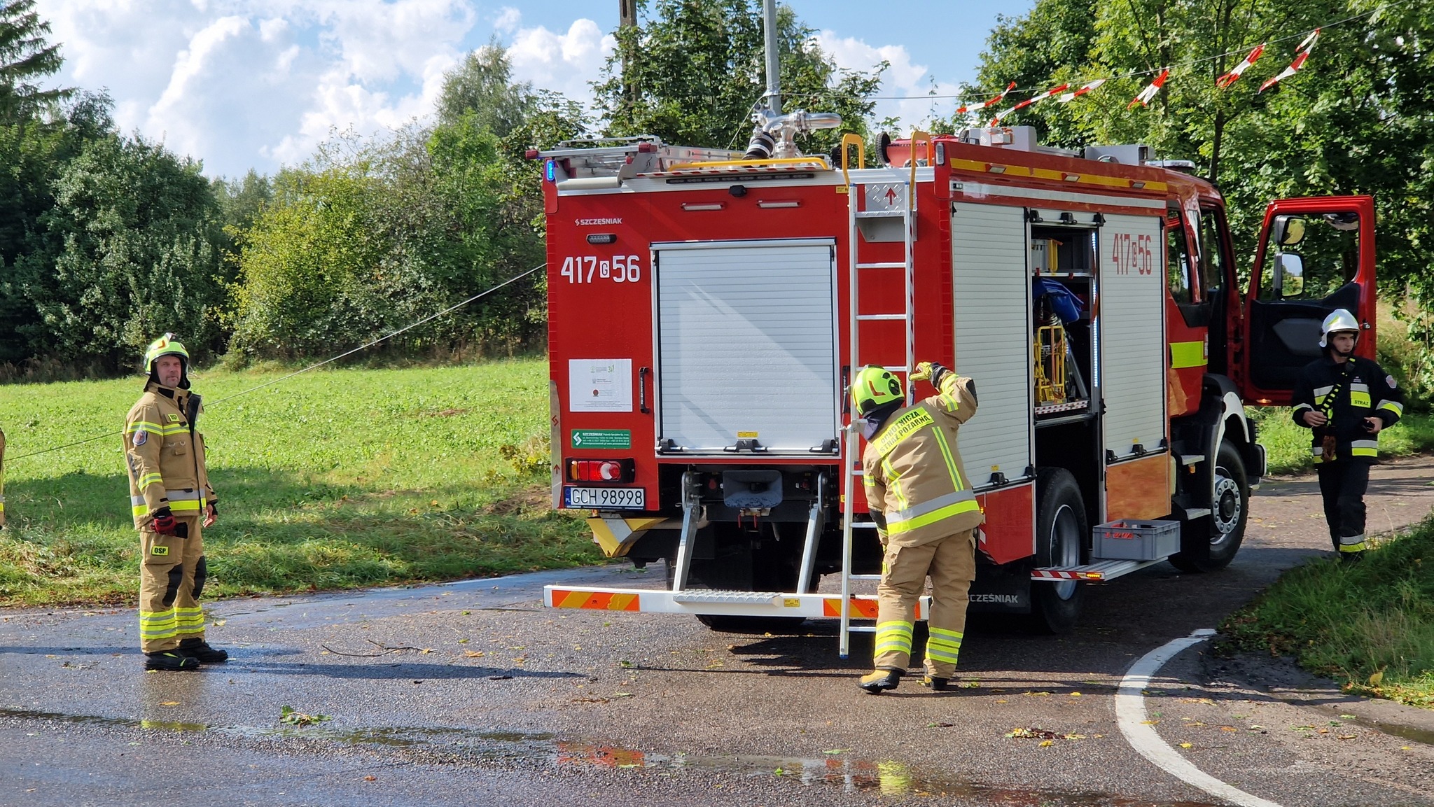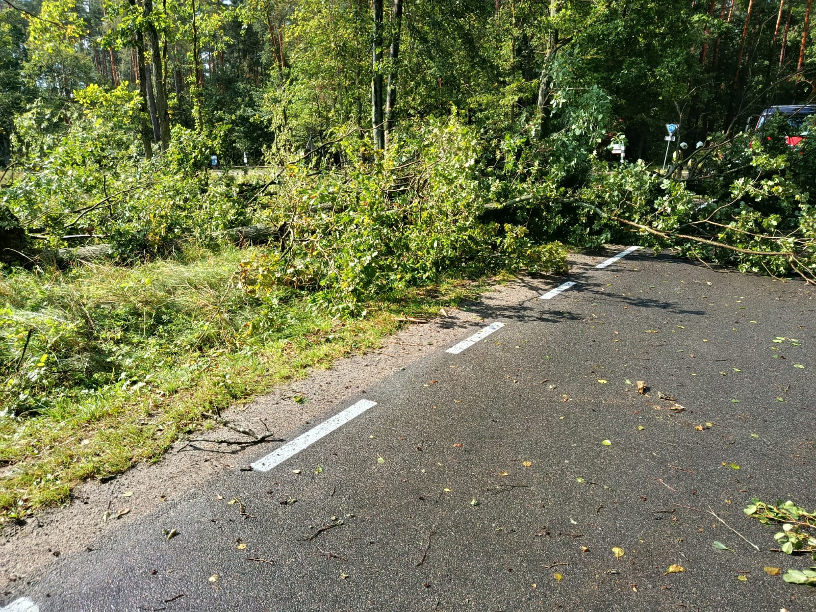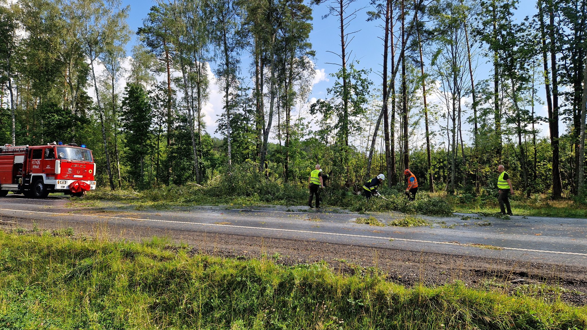 Dziś (5.09) po stosunkowo krótkiej ale intensywnej burzy w gm. Czersk strażacy usuwają jej skutki. DK22 trzy powalone drzewa, Nieżurawa. Droga wojewódzka, przy jeziorze Świdno powalone drzewo.