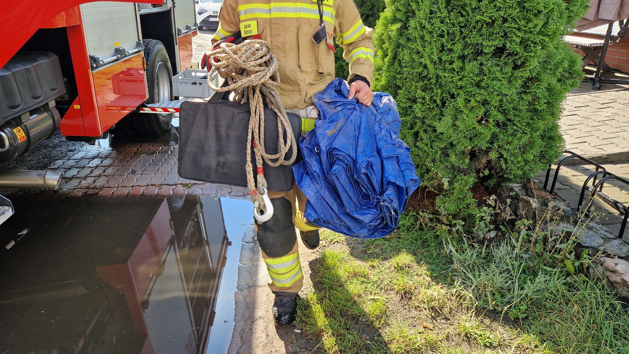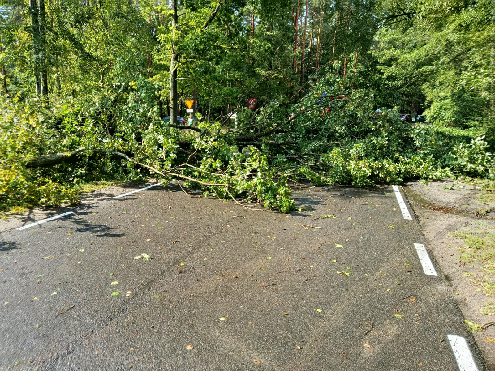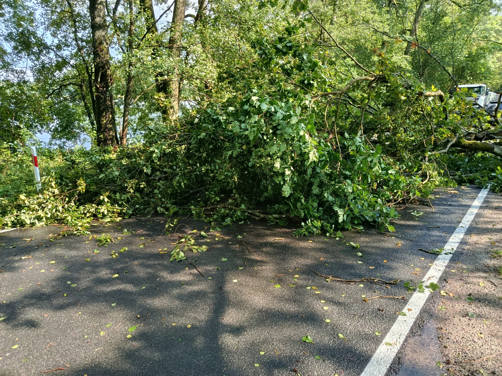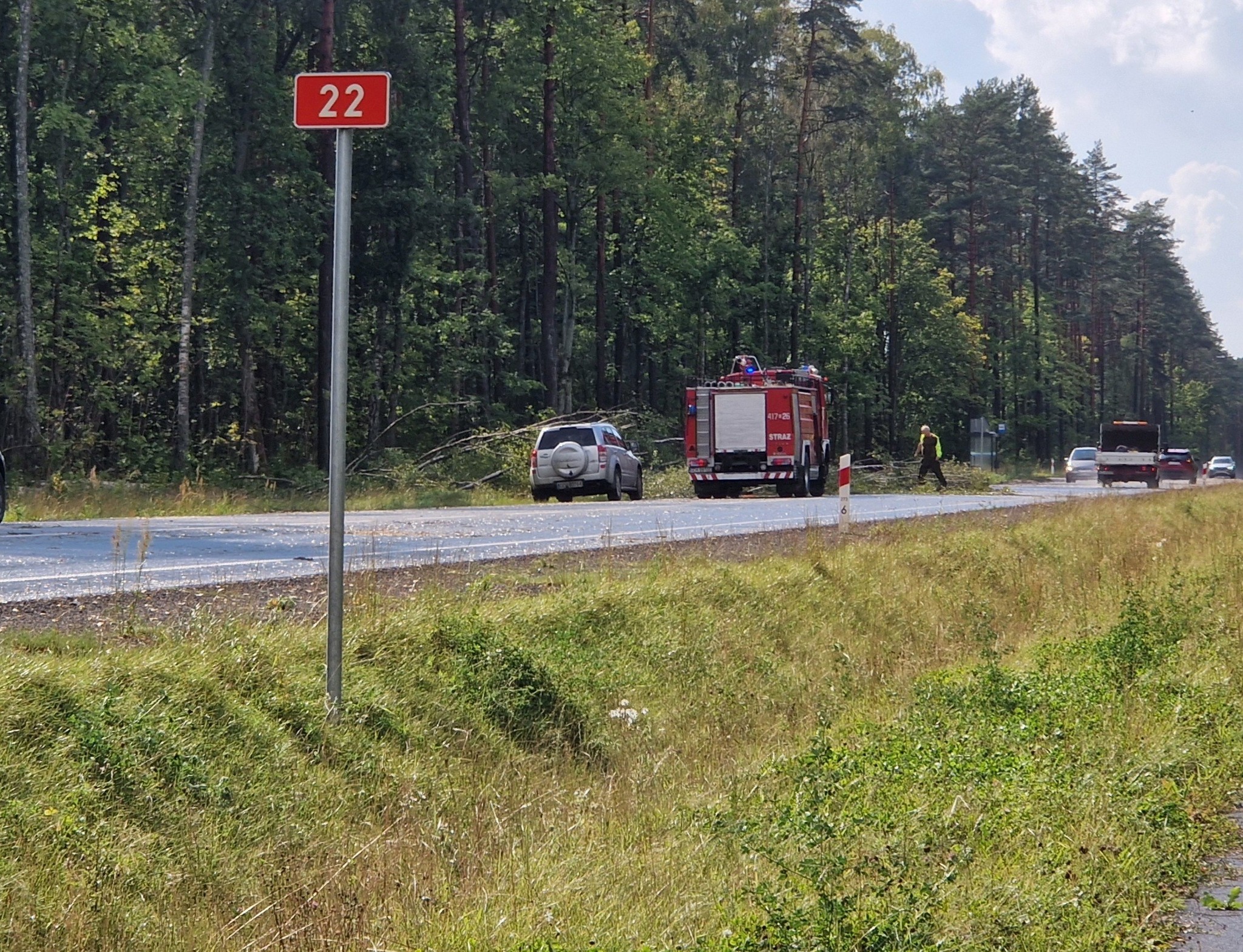 Dziś (5.09) po stosunkowo krótkiej ale intensywnej burzy w gm. Czersk strażacy usuwają jej skutki. DK22 trzy powalone drzewa, Nieżurawa. Droga wojewódzka, przy jeziorze Świdno powalone drzewo.
