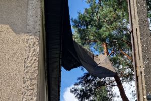 Występowały utrudnienia w ruchu. Łąg-Kolonia uszkodzony słup telekomunikacyjny przy przejeździe kolejowym. Napływają kolejne zgłoszenia, zerwany dach budynku mieszkalnego - poszycie, ul. Chojnicka w Łęgu oraz droga Łąg - Przyjaźnia (zatarasowana droga, powalone drzewo).