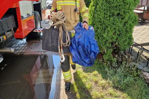 GM.CZERSK. Intensywna burza, powalone drzewa, uszkodzony słup, zerwane poszycie budynku mieszkalnego. Strażacy działają