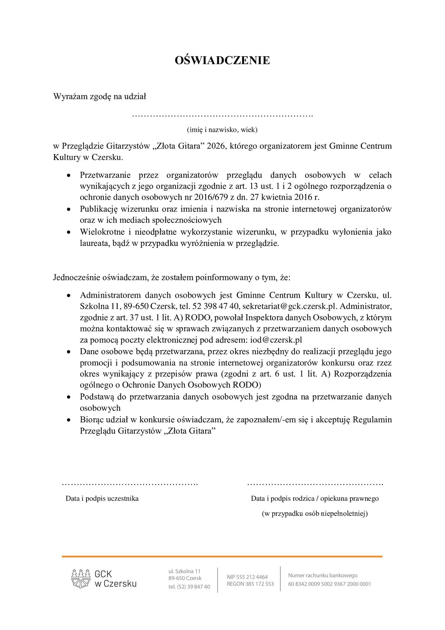 GM. CZERSK. Konkurs Złota Gitara