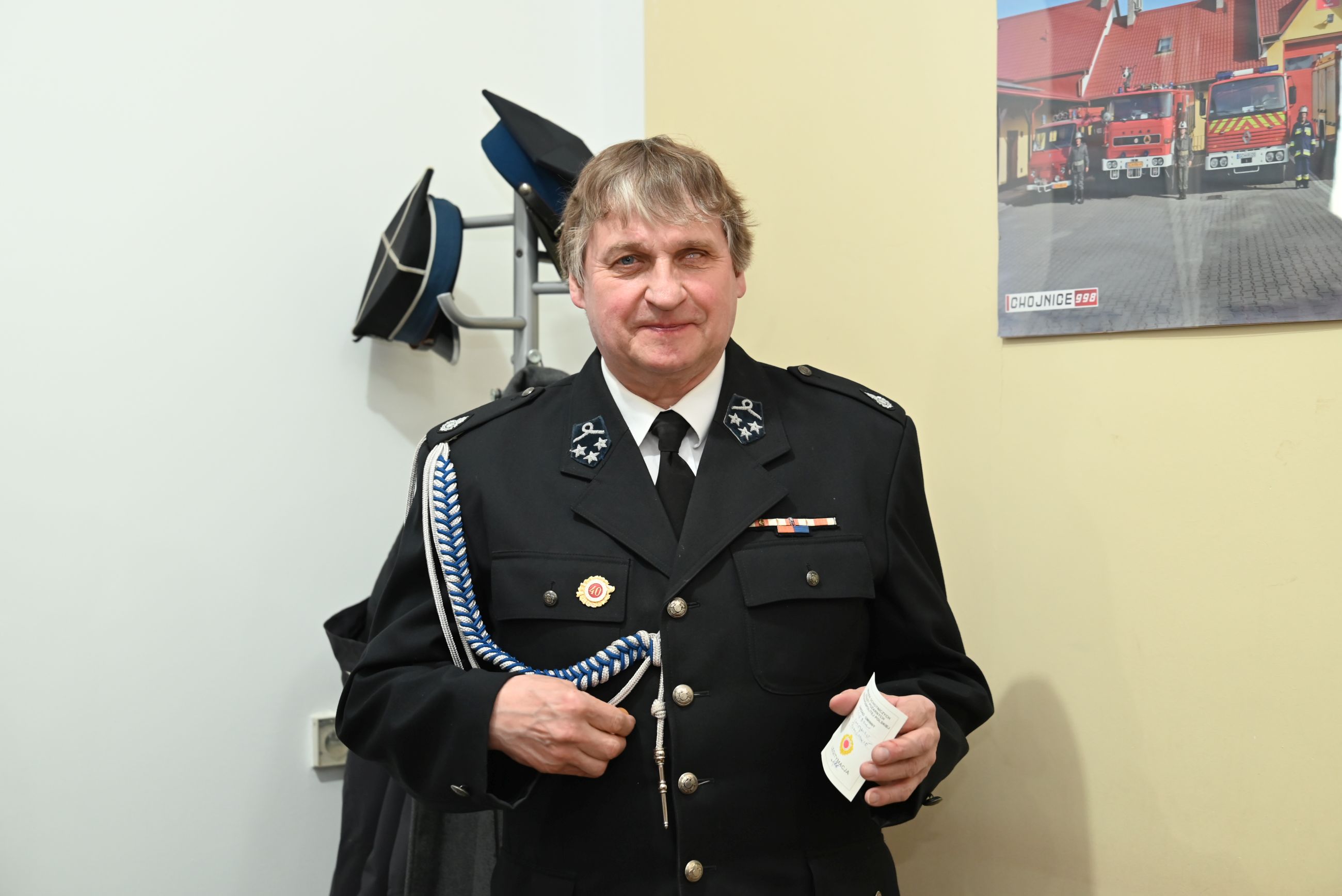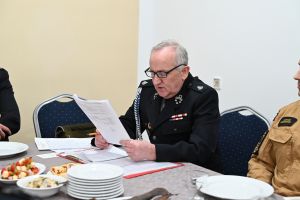Podczas spotkania wręczono również wyjątkowe wyróżnienie dla wieloletniego druhna jednostki. Andrzej Bakhaus otrzymał odznakę za 45 lat służby w straży pożarnej, co spotkało się z dużym uznaniem i gratulacjami ze strony zgromadzonych.