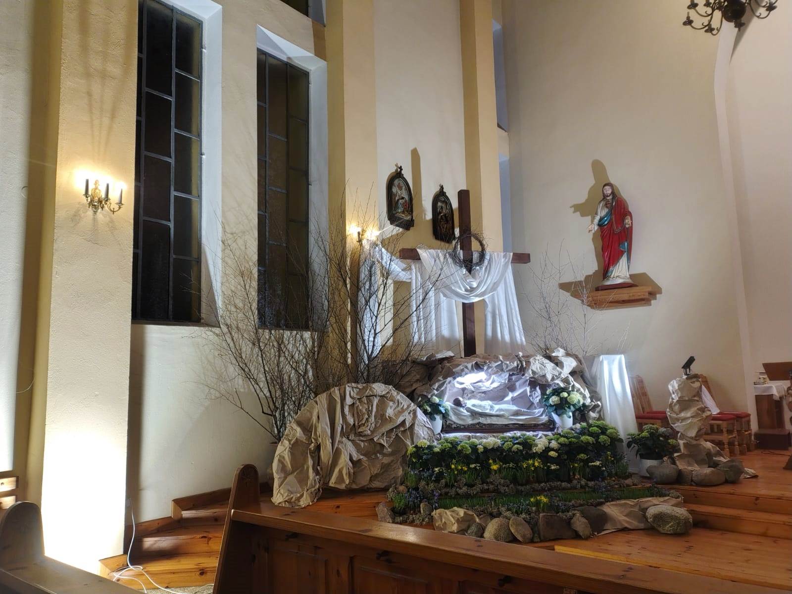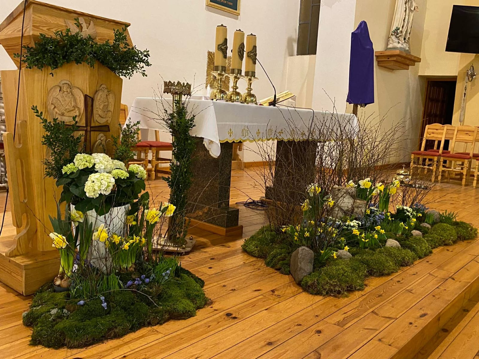 W Parafii pw. Świętego Józefa w Mokrem k. Czerska przygotowano w tym roku wyjątkowy Grób Pański, który łączy szlachetność formy z głęboką symboliką liturgiczną oraz pięknem naturalnych dekoracji.