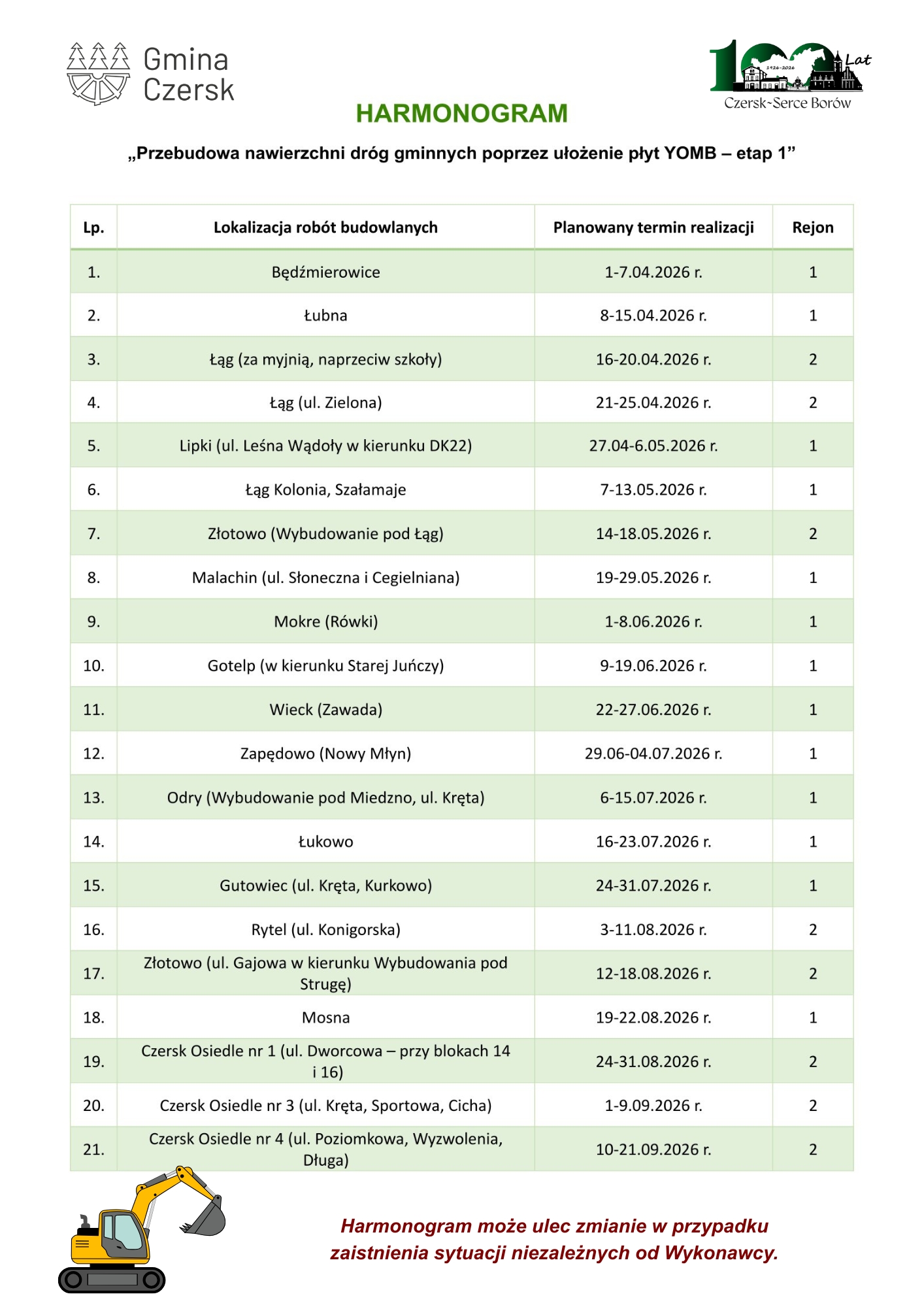Gm. Czersk. HARMONOGRAM