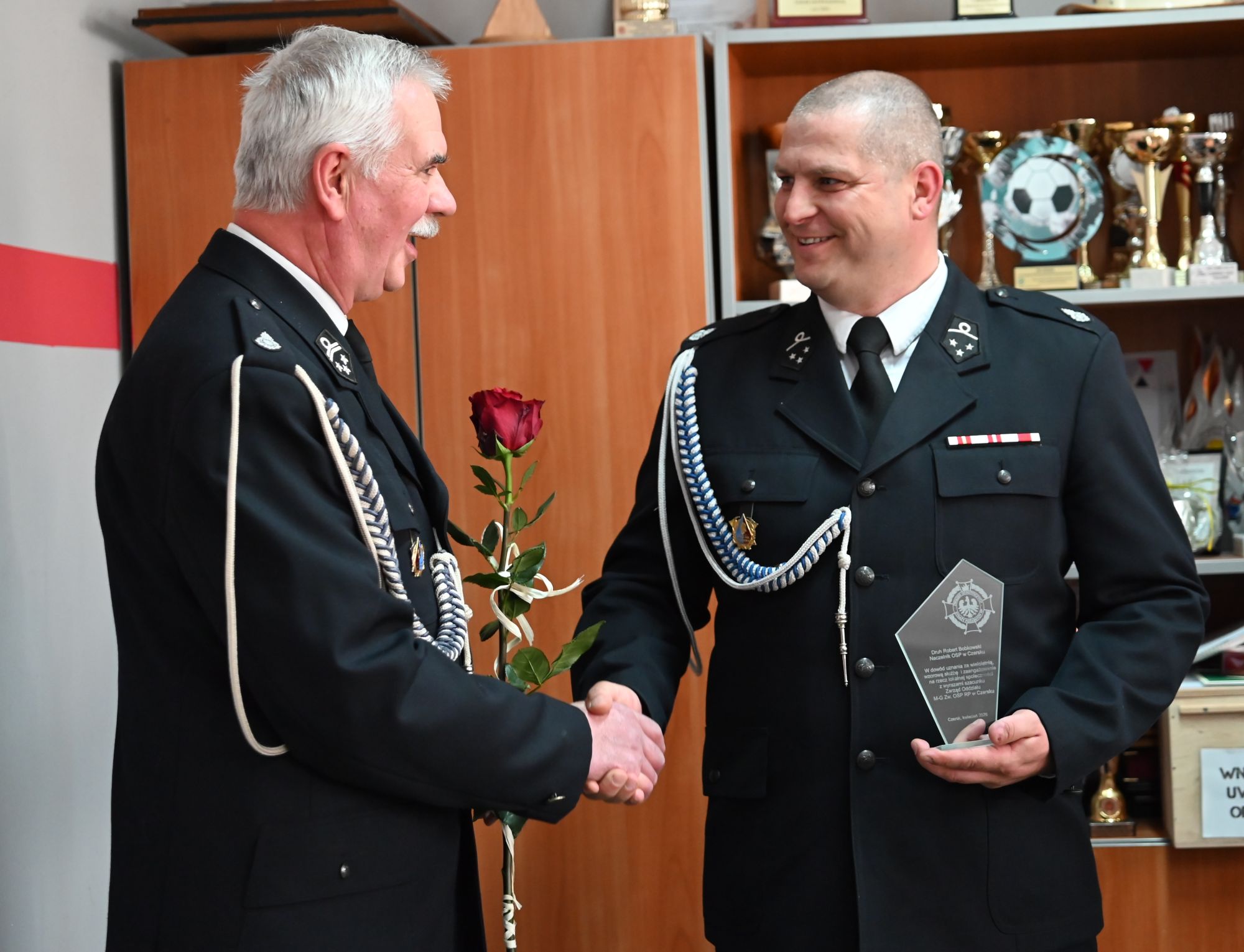 Podczas uroczystości wręczono pamiątkowe statuetki oraz podziękowania, które były wyrazem wdzięczności za wieloletnią służbę, zaangażowanie oraz wkład w rozwój jednostek i bezpieczeństwo mieszkańców.