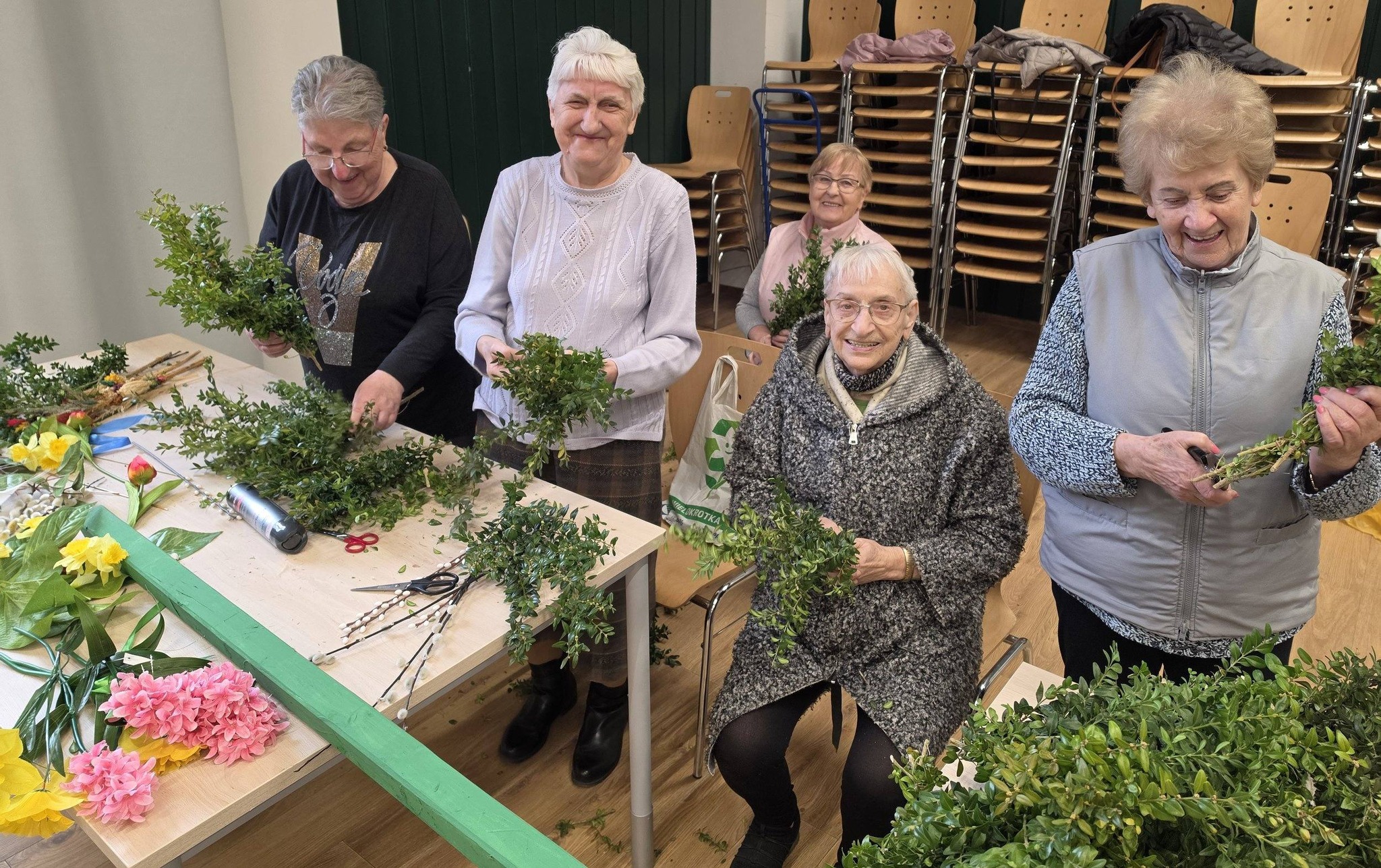 Za nami niezwykłe warsztaty tworzenia palm wielkanocnych — pełne uśmiechu, współpracy i prawdziwie świątecznej atmosfery. Było twórczo, kolorowo i bardzo pracowicie, bo tworzenie palm okazało się zajęciem wymagającym cierpliwości, precyzji oraz ogromnego zaangażowania uczestników.