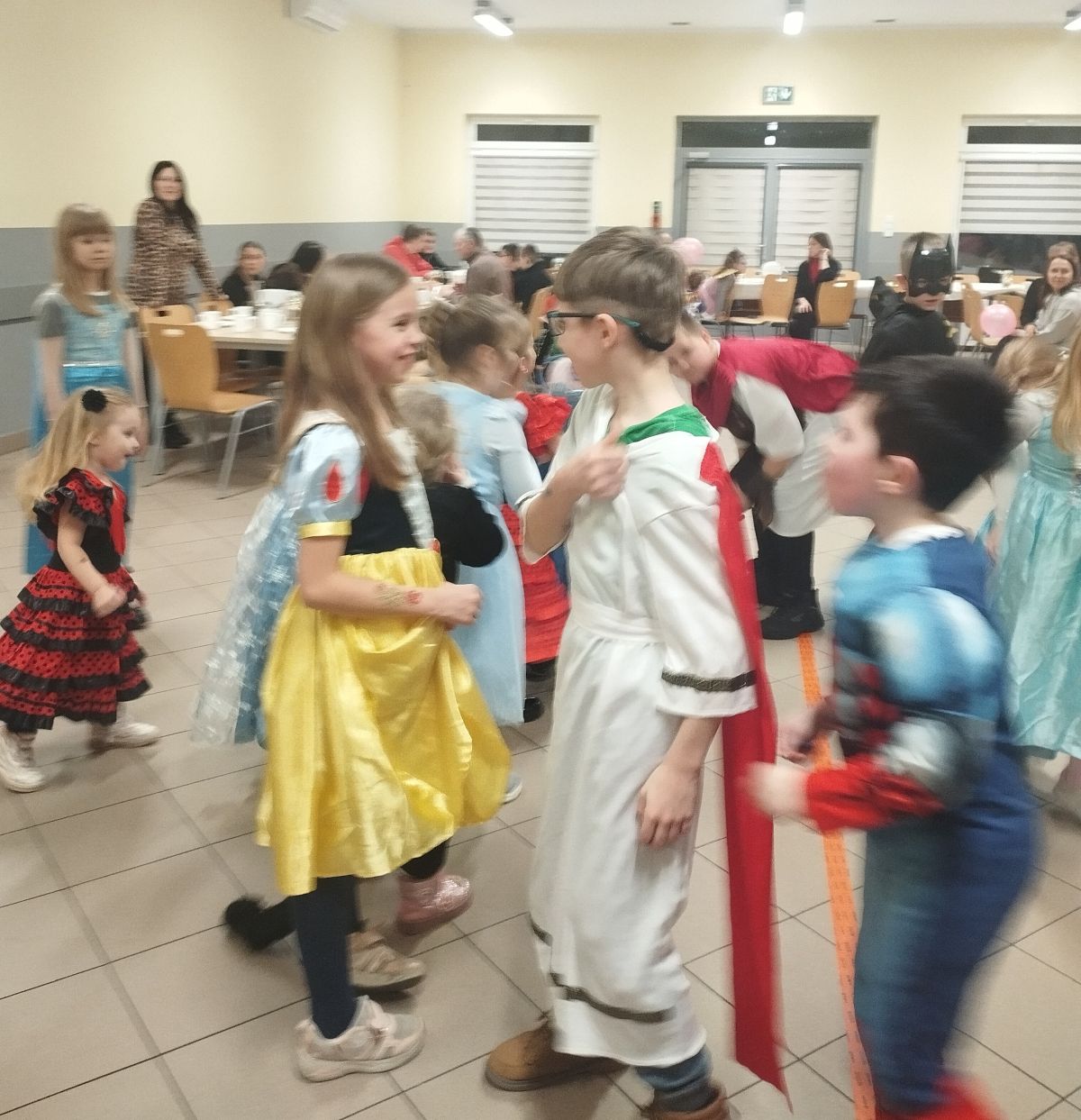 W miniony czwartek ("tłusty") dzieci w barwnych, karnawałowych strojach bawiły się w świetlicy pod kierunkiem Pań Animatorek. Były pląsy, zabawy ruchowe i poczęstunek.