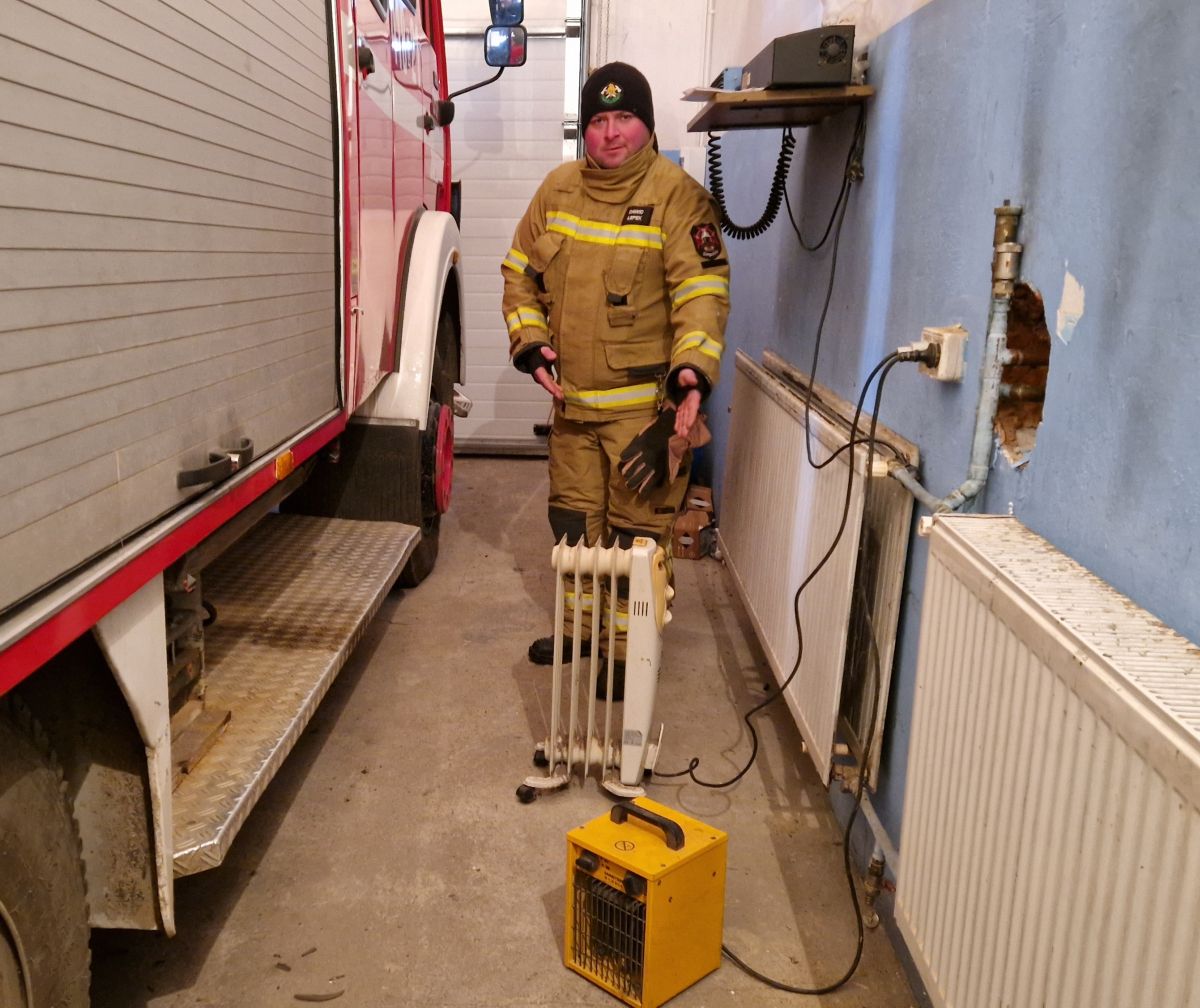 Strażacy od kilku dni ogrzewają garaż elektryczną farelką i piecykiem na prąd (olejak). Mróz sięga tutaj w nocy nawet 10 stopni Celsjusza poniżej zera. Druhowie chcą zachować zdolność bojową, więc musi być odpowiednia temperatura, aby pojazd ruszył na akcję. Trzeba jednak pilnować tej "tymczasowej instalacji grzewczej" z uwagi na możliwość ewentualnego uszkodzenia sfatygowanych już „źródeł ciepła” i potencjalny pożar.
