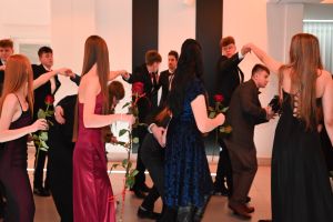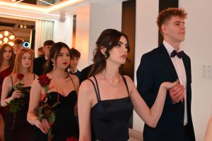 Tradycyjnie bal studniówkowy rozpoczęto polonezem z udziałem wszystkich uczniów, zaproszonych gości i nauczycieli. Miłą niespodzianką były przygotowane przez uczniów symboliczne prezenty –podziękowania, wręczone wszystkim nauczycielom. .