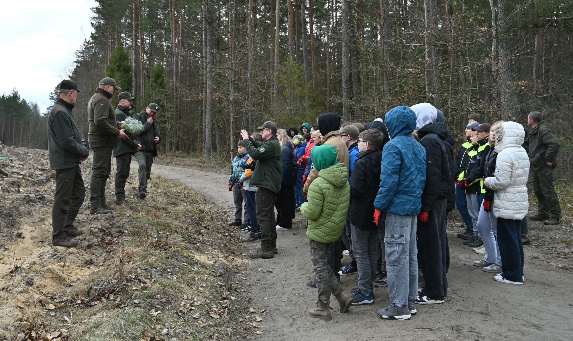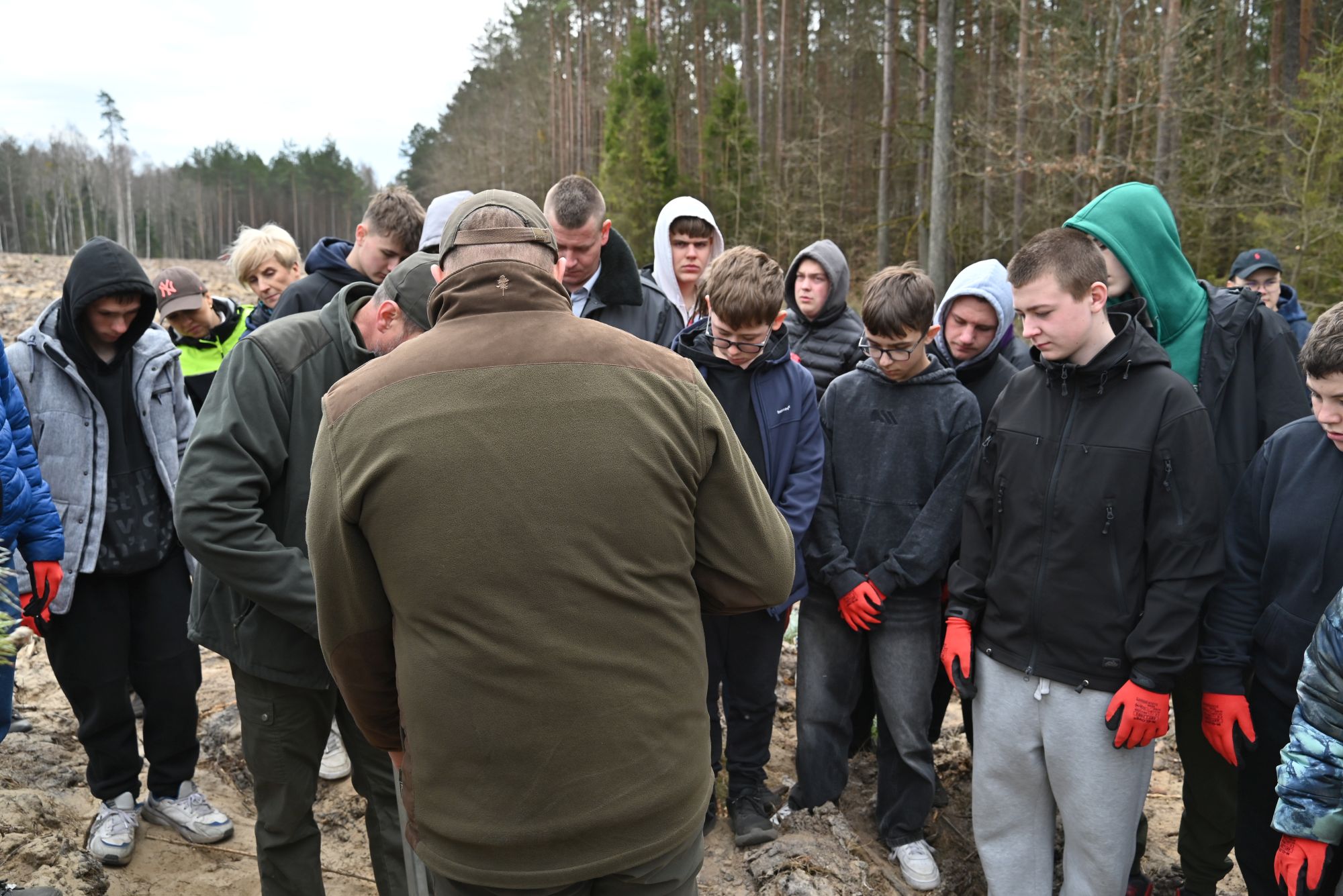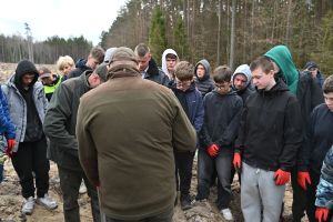 Uczestników powitał nadleśniczy Tomasz Grugel, który podkreślił znaczenie takich inicjatyw dla środowiska oraz edukacji przyrodniczej. Zanim rozpoczęto pracę w terenie, przeprowadzono krótkie szkolenie – pokazano, jak prawidłowo korzystać z kosztura oraz jak sadzić młode drzewka.