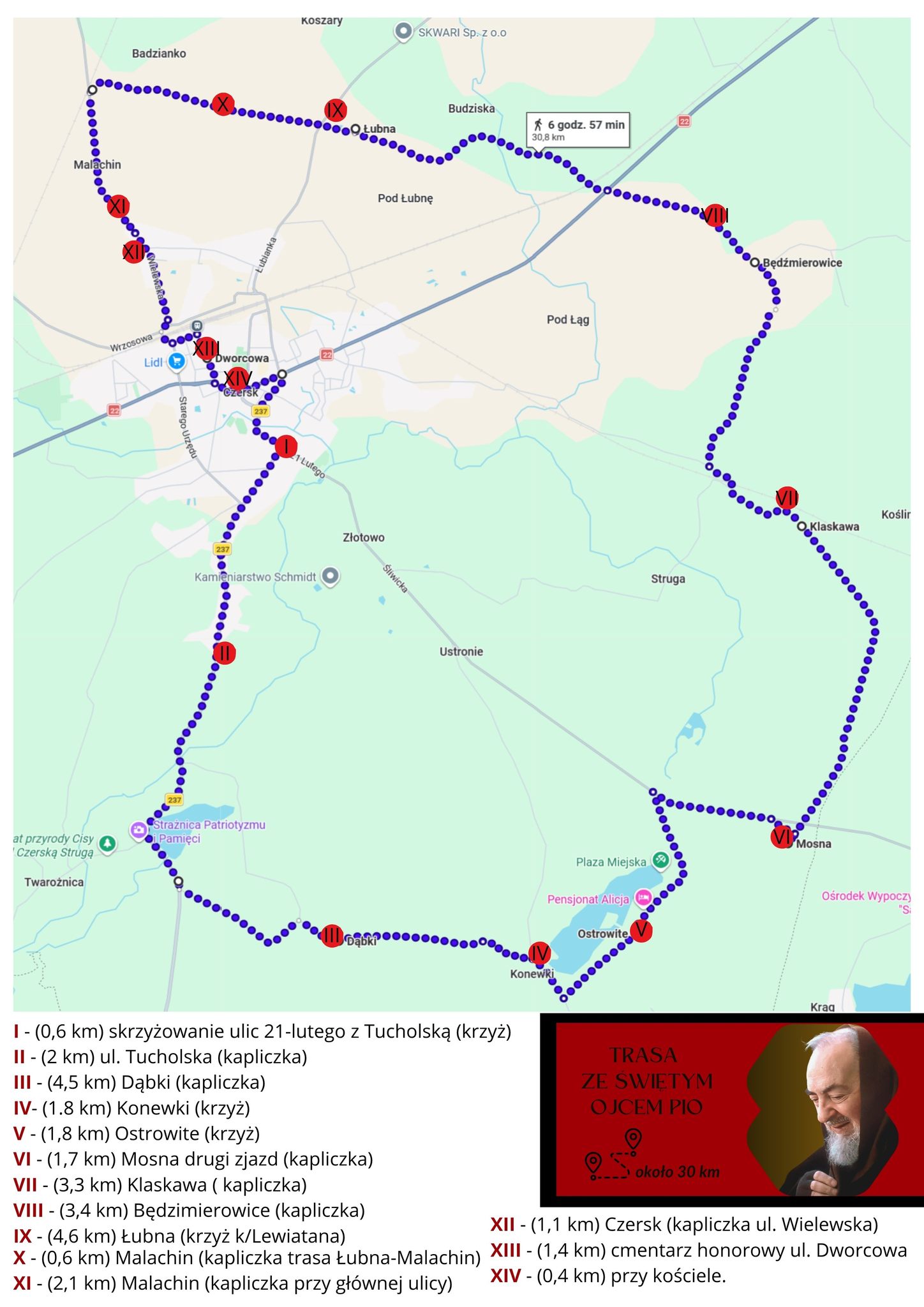 Trasa ze św. o. Pio – 30 km