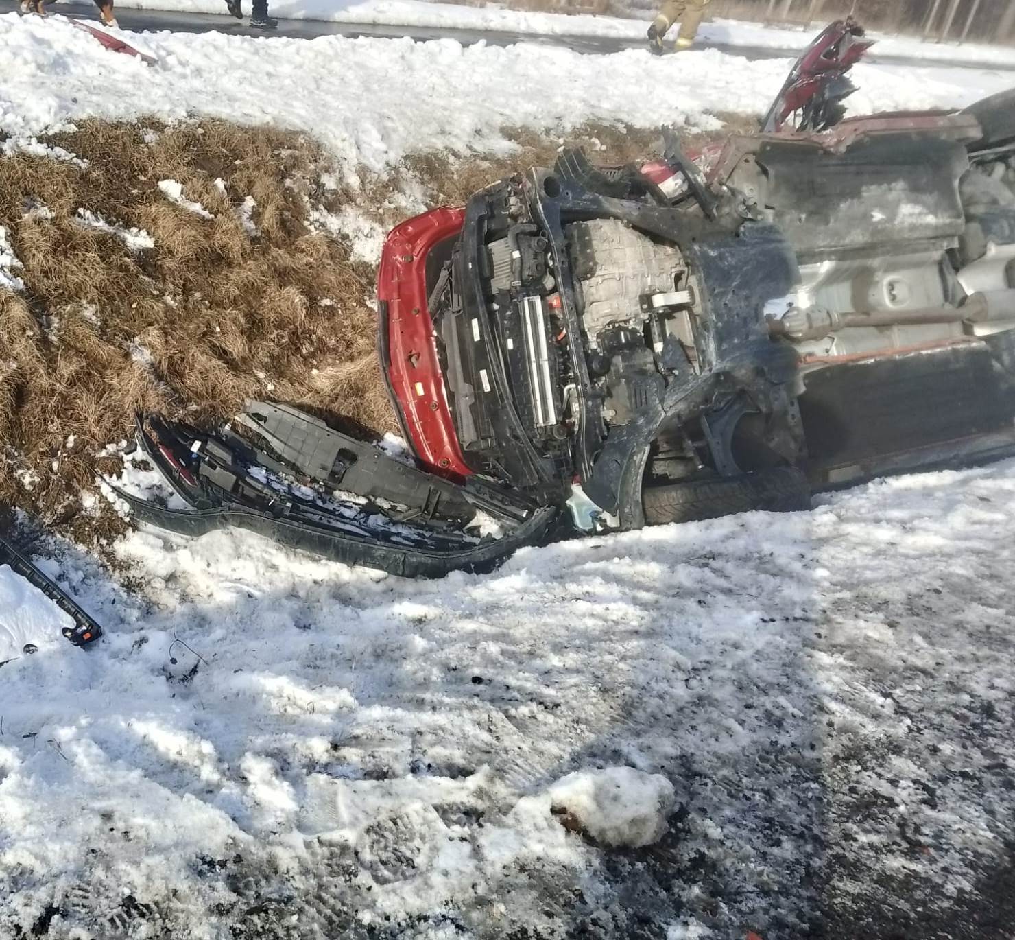 Zderzyły się dwa samochody marki: kia oraz peugeot. Znajdowali się w nich tylko kierujący, którym zaostała udzielona pomoc. Do poszkodowanych strażacy dotarli używając narzędzi hydraulicznych. Są przytomni. Więcej wkrótce.