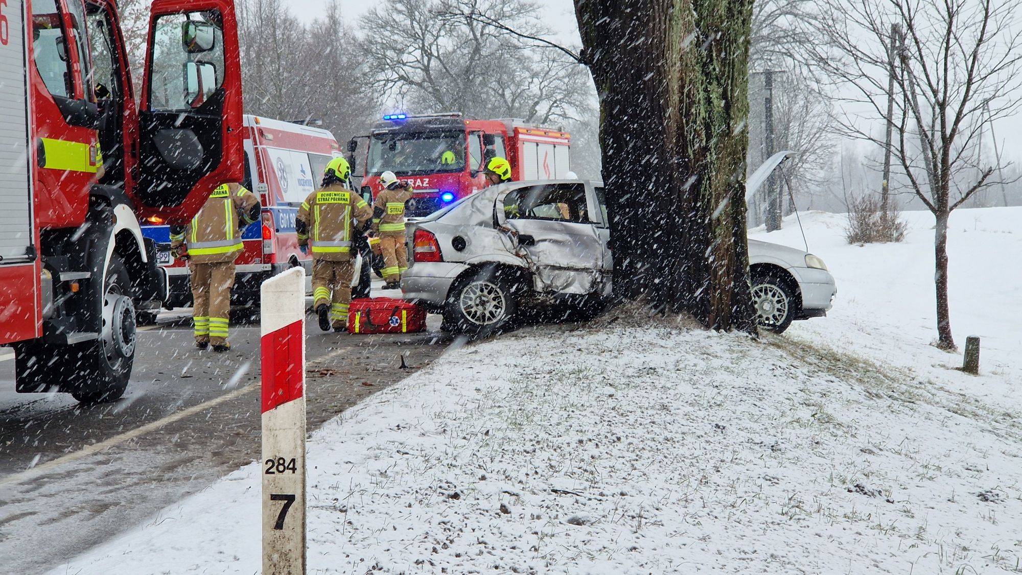 Ze wstępnych ustaleń policji wynika, że kierujący oplem zjechał z drogi i uderzył w drzewo.