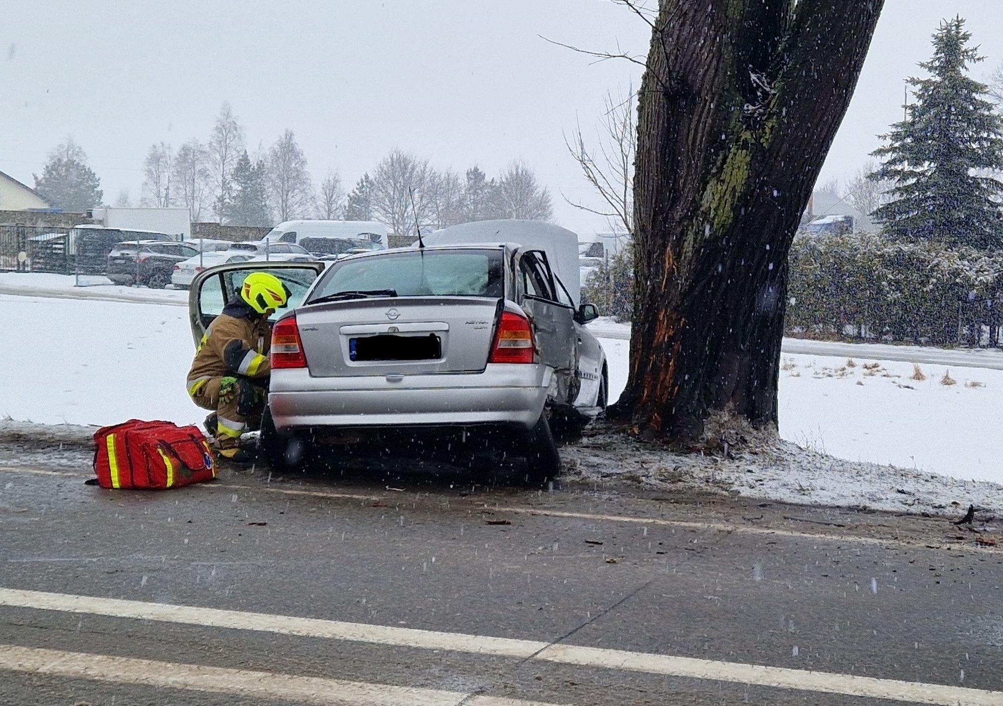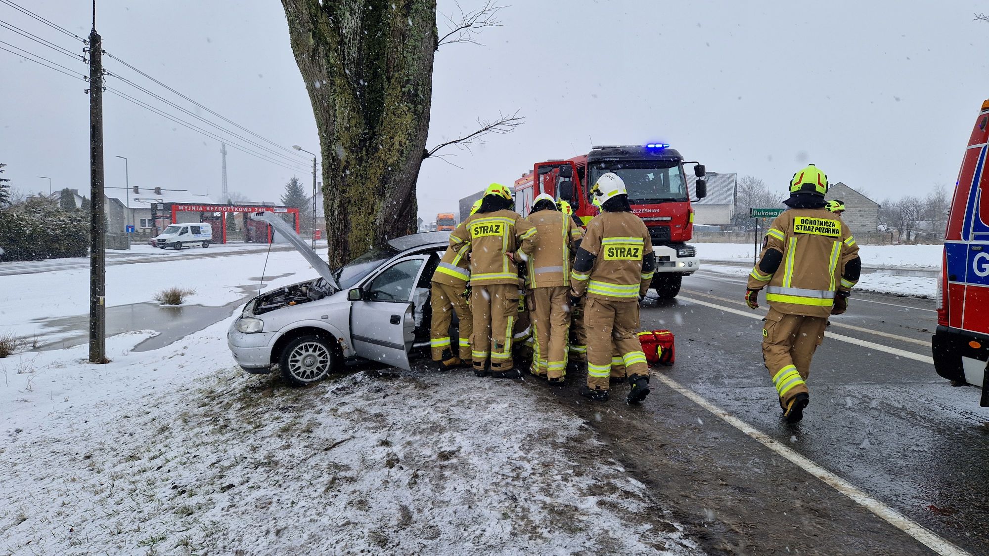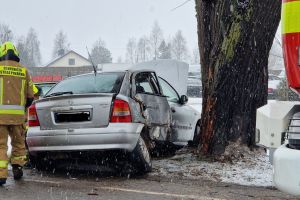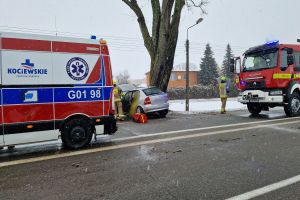 Dziś (13.02) przed godz. 9.00 służby otrzymały wezwanie do zdarzenia w Łęgu – samochód uderzył w drzewo – ul. Chojnicka, w pobliżu skrzyżowania z drogą prowadzącą do Bukowej Góry.