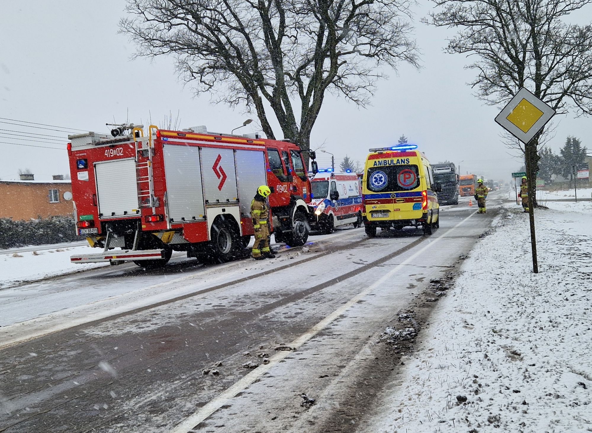 Droga DK 22 była zablokowana – od strony Czerska. Na drodze jest ślisko, Uważajcie.