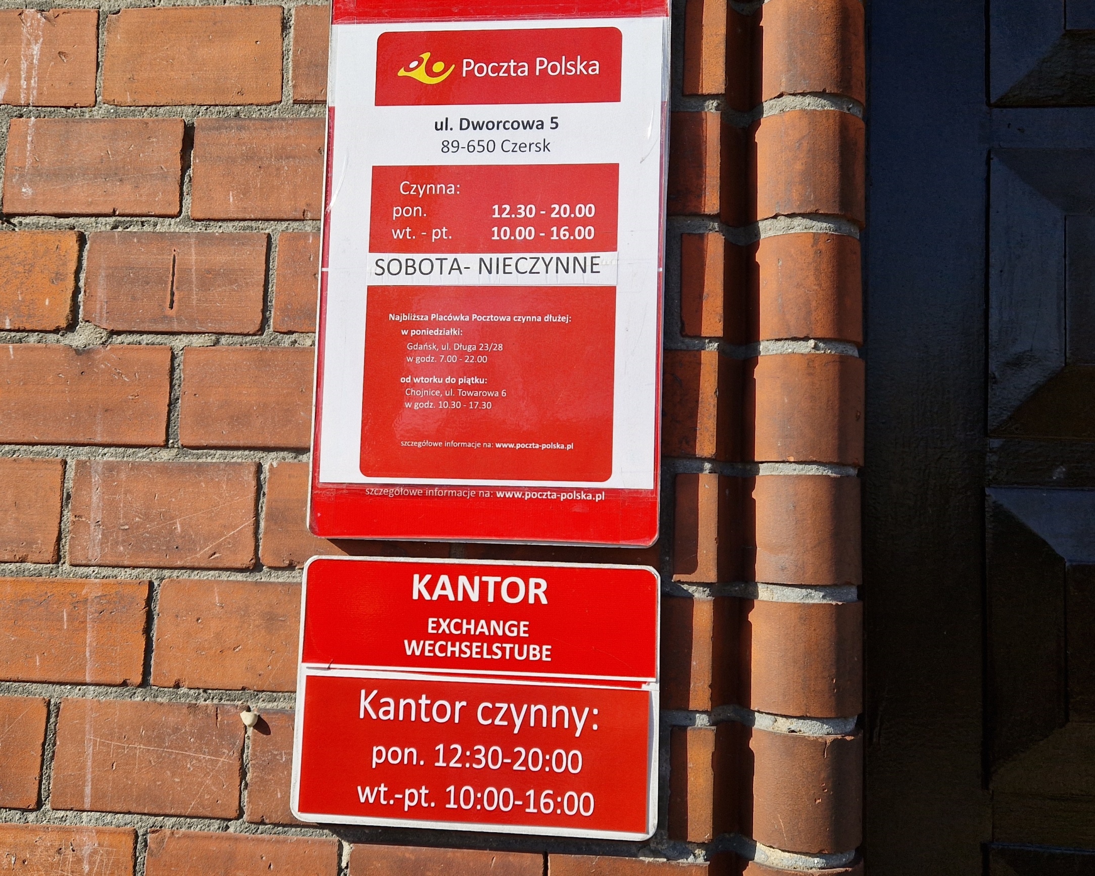 Mieszkańcy sygnalizują, że obecne godziny otwarcia placówki w Czersku nie są korzystne. Budynek Poczty Polskiej jest otwierany od wtorku do piątku w godz. 10.00 - 16.00. Tylko w poniedziałek placówka jest czynna dłużej pd 12.30 do 20.00, a w każdą sobotę zamknięta. W związku z tym tworzą się na przykład kolejki, ale też dochodzi do innych sytuacji - poniżej szczegóły.