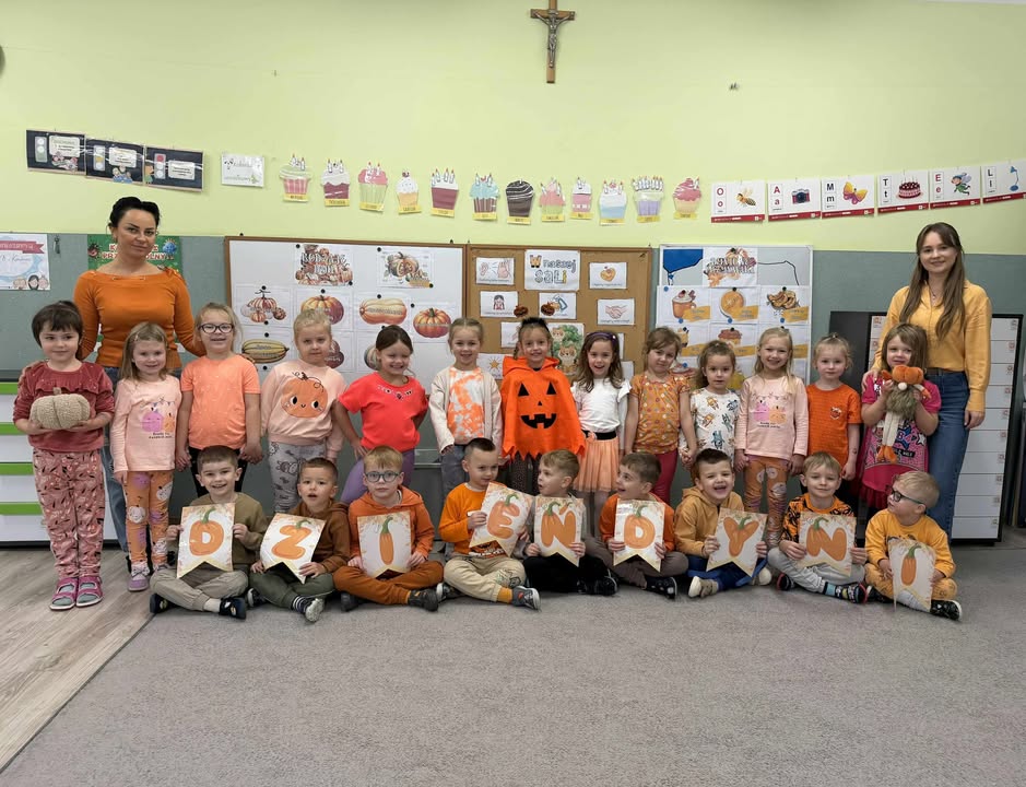 29 października 2025 r. nasze przedszkole wypełniły odcienie pomarańczy i zapach jesieni. Obchodziliśmy Dzień Dyni— wspaniałą okazję do świętowania bogactwa tej pięknej pory roku. Dzieci uczestniczyły w zajęciach inspirowanych opowiadaniem o „Dynii Dorotce”, brały udział w radosnych zabawach, korzystały z fotobudki oraz delektowały się pyszną zupą dyniową przygotowaną przez nasze panie kucharki. 🥣🍁
