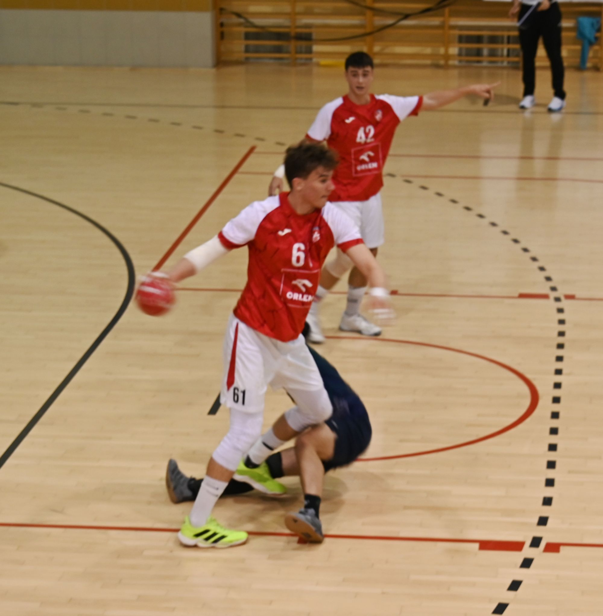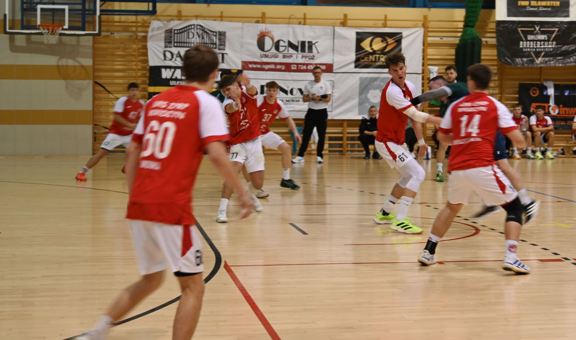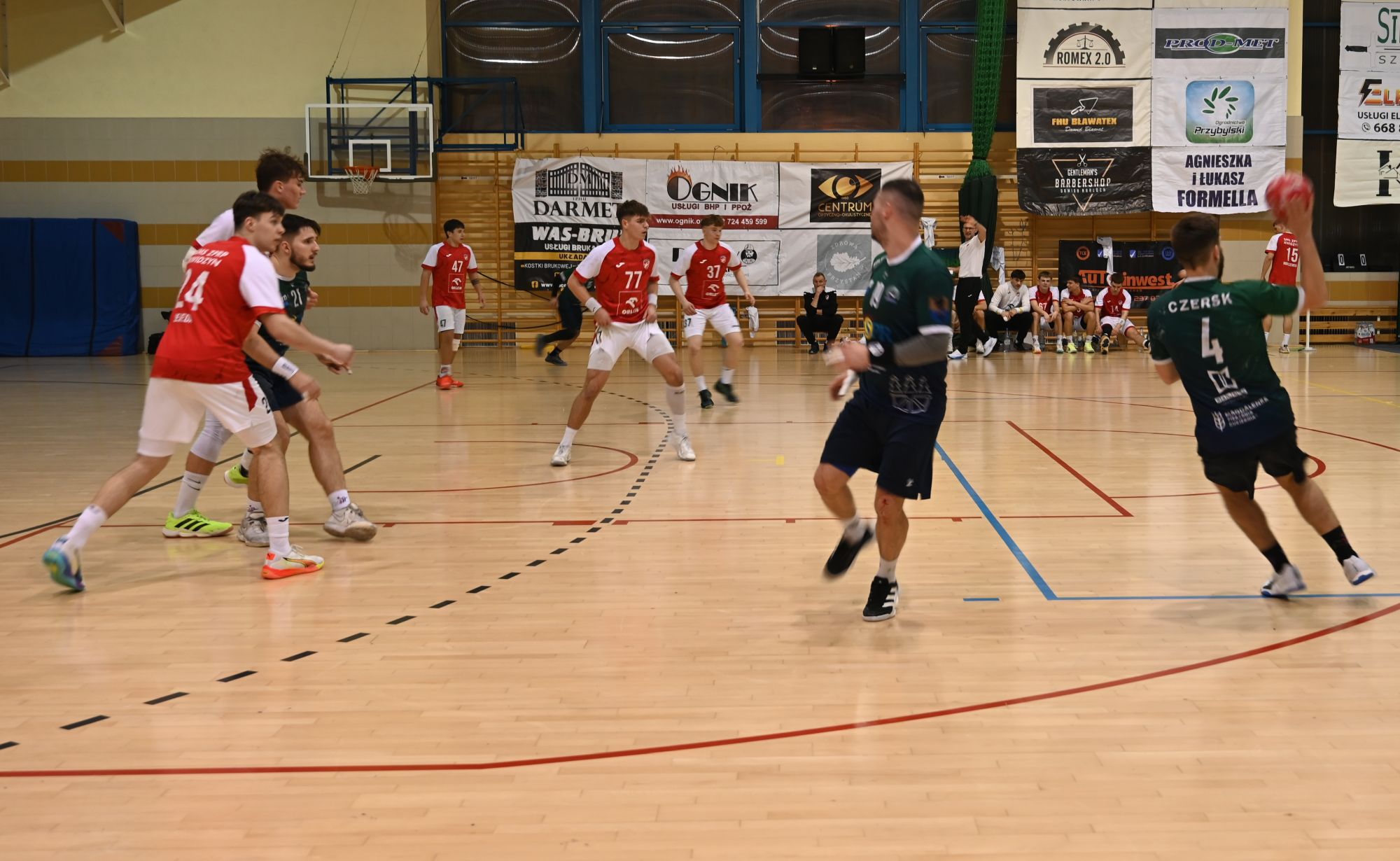 Liderem naszego zespołu był fenomenalny Maksymilian Linda, który dwoił się i troił na parkiecie, kończąc mecz z dorobkiem 11 bramek. Dzielnie wspierali go Szymon Makowiecki (5) oraz Karol Radecki (5). Z kontrataków i rzutów karnych nie mylił się Łukasz Krasucki (5), a skutecznie kończył akcje nasz obrotowy Szymon Scharmach (4). Bardzo dobrą zmianę dał również Jakub Przedpełski (3), który brawurowymi akcjami indywidualnymi wniósł mnóstwo jakości do gry zespołu."