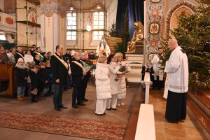 Po przekazaniu klucza do świątyni, przedstawiciele kilku wspólnot działających w parafii złożyli życzenia nowemu ks. proboszczowi. Również księża wikariusze powitali oficjalnie ks. Krzysztofa.