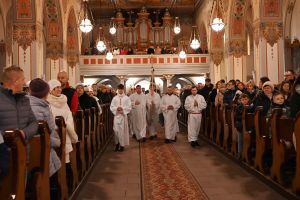 Podczas nabożeństwa ks. Krzysztof przedstawił się, wygłosił homilię, nawiązywał w niej do dzisiejszego święta - Świętej Rodziny. Mówił, że właśnie parafia, Kościół jako wspólnota, jest taką rodziną. Zapewnił o otwartości na kontakt z wiernymi i zapraszał ich do rozmowy osobistej, jeśli będzie taka potrzeba.