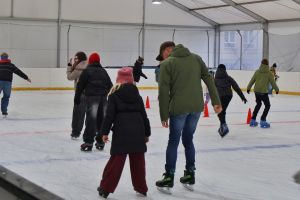 Już w pierwszych godzinach lodowisko było pełne – panowała swobodna, radosna atmosfera, a wspólna jazda na łyżwach stała się świetnym sposobem na aktywne spędzenie czasu wolnego.