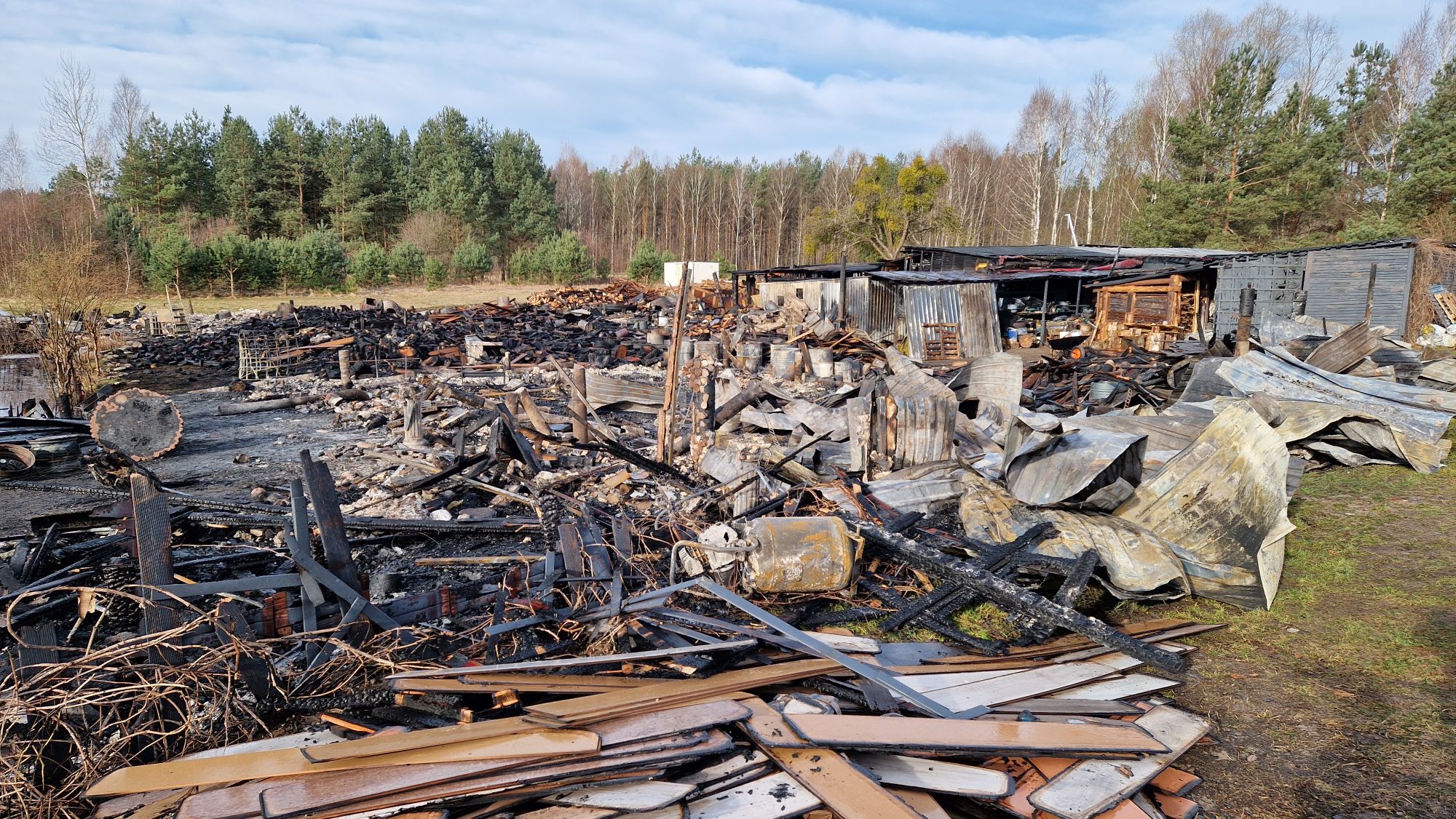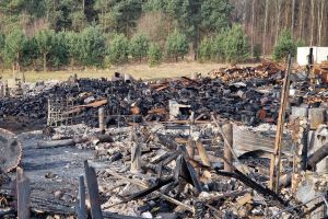 Zakończyła się trwająca wiele godzin akcja gaśnicza po dużym pożarze (zobacz artykuł), do którego doszło w sobotę (11.04) około godziny 20:00 przy ul. Wrzosowej w Czersku. Ogień objął kompleks drewnianych zabudowań – wiat połączonych w jedną całość, gdzie prowadzona była działalność rękodzielnicza (wytwarzano m.in. figurki, świece, znicze, stroiki, itp.). Na miejscu była też ekspozycja produktów - galeria.