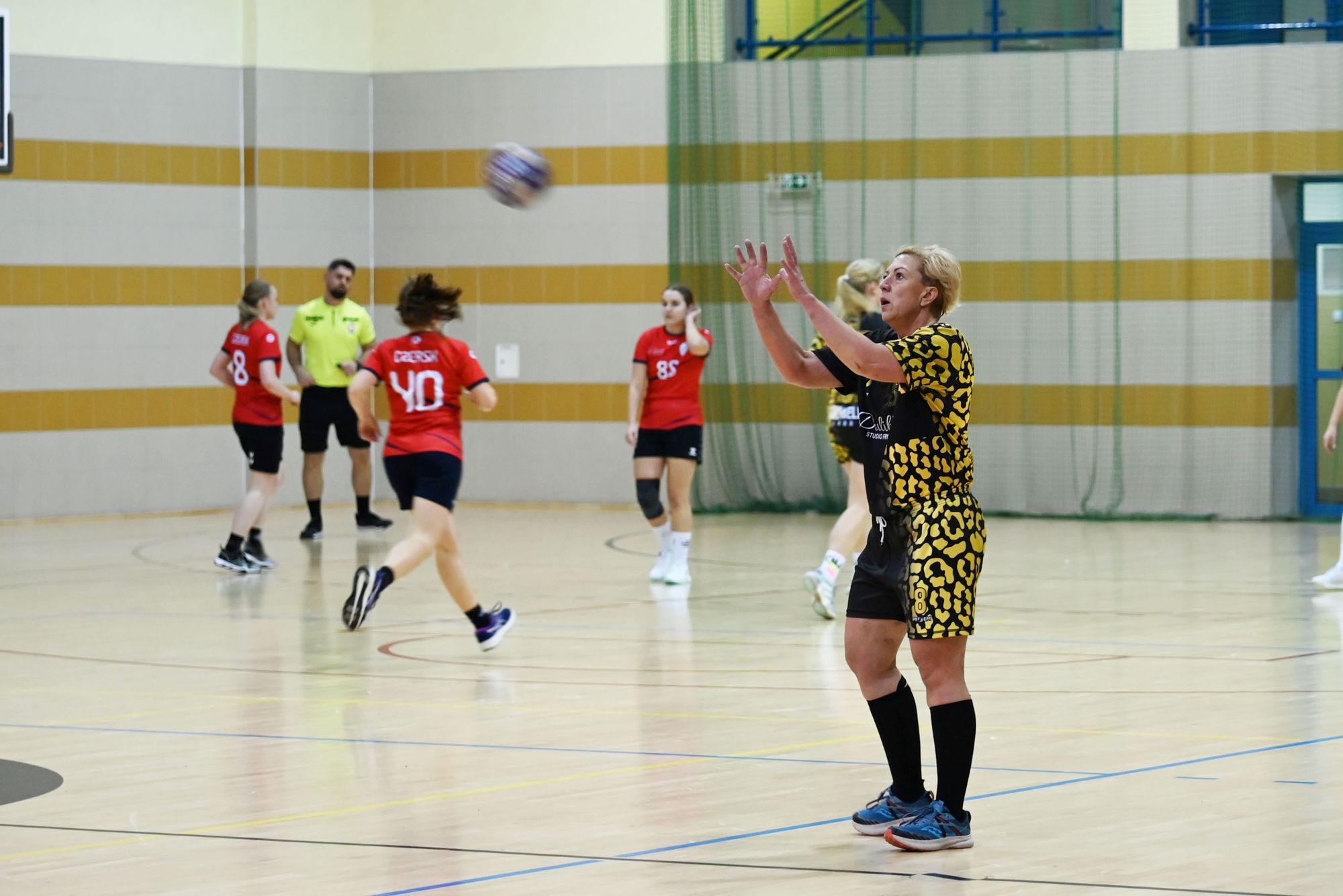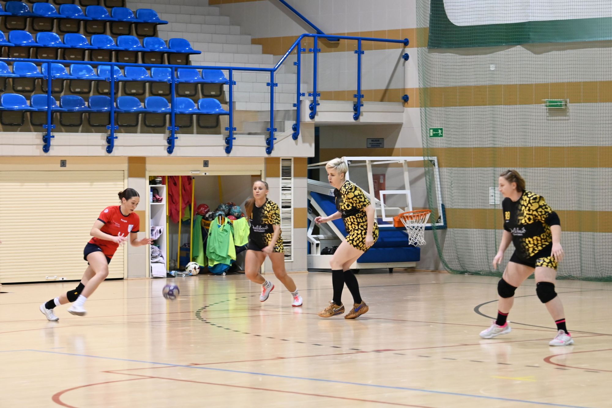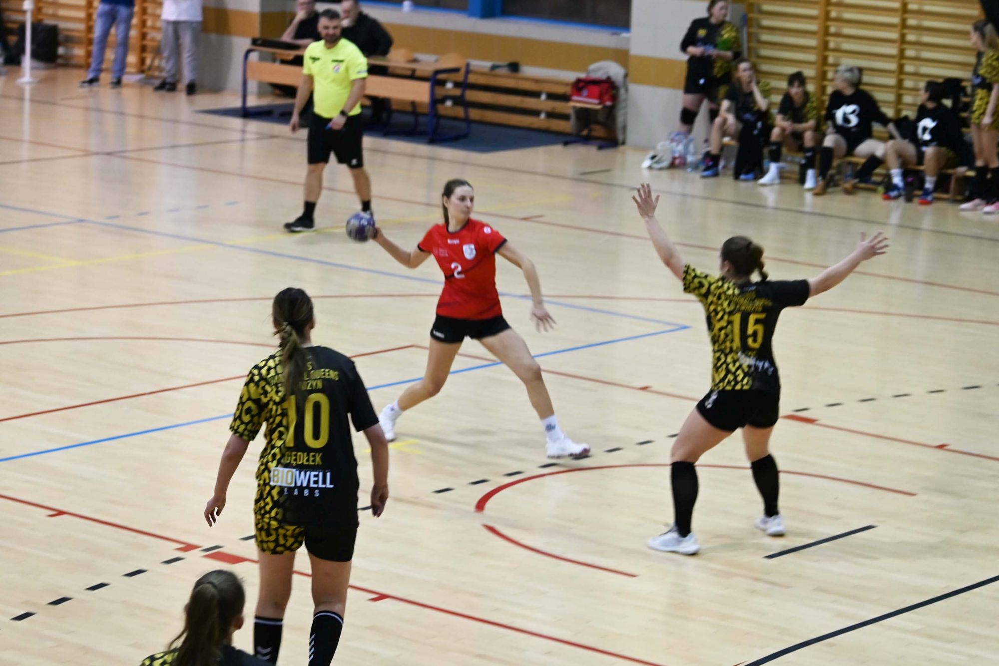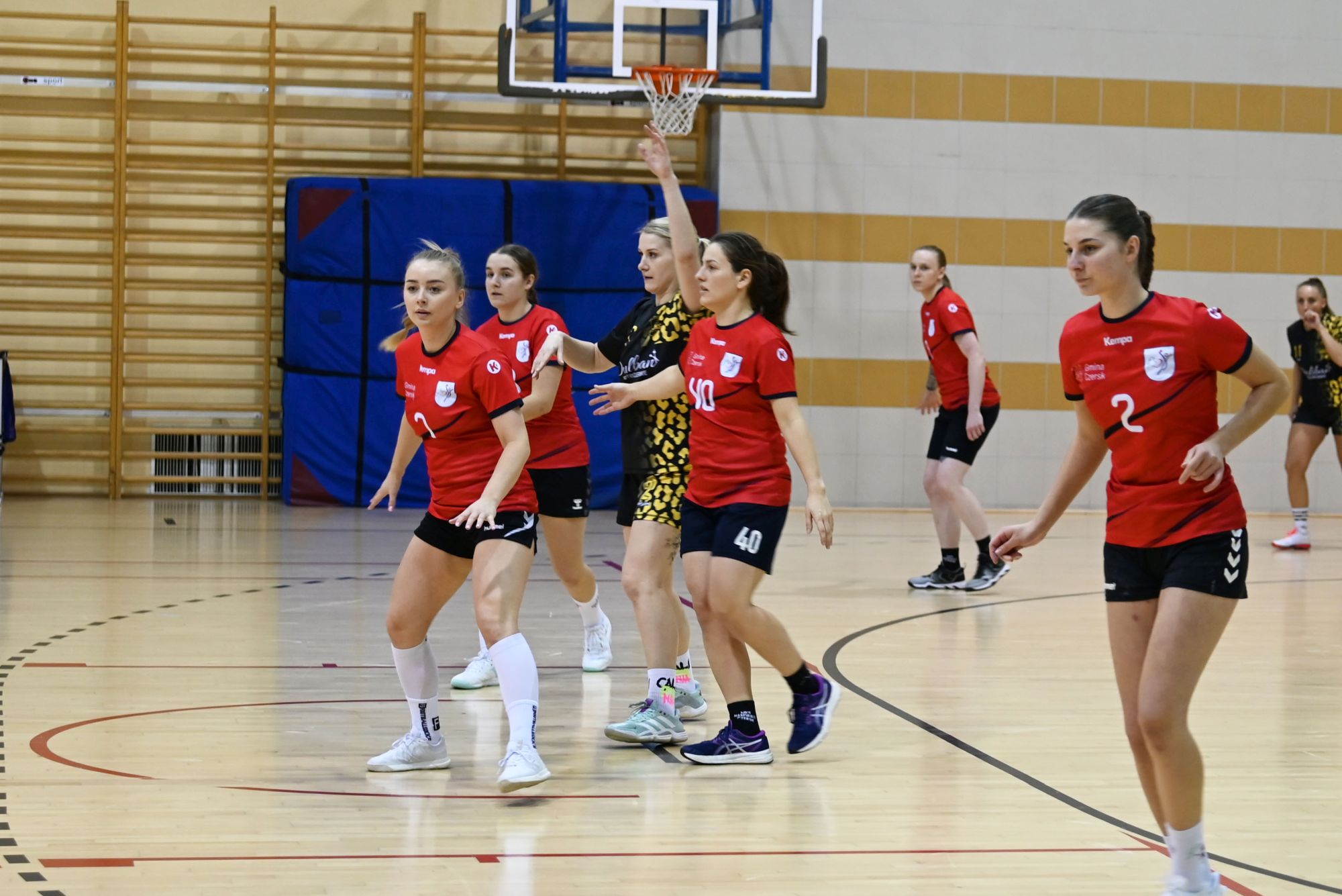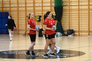 Z biegiem czasu gospodynie uspokoiły grę i zaczęły skuteczniej funkcjonować zarówno w ataku, jak i w obronie. Pierwsza połowa stała się bardziej wyrównana, a solidna postawa defensywna obu zespołów sprawiała, że różnica bramek stopniowo się zmniejszała. Do przerwy minimalnie prowadziła drużyna z Kwidzyna, schodząc do szatni przy wyniku 8:9.