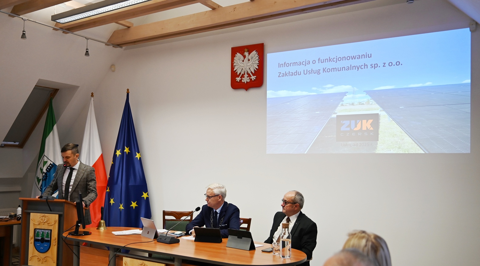 Dyrektor Krystian Łangowski (na zdjęciu) przedstawił na sesji rady miejskiej informację o funkcjonowaniu Zakładu Usług Komunalnych sp. z o.o. w Czersku. Przygotował radnym prezentację (zobacz TUTAJ), którą szczegółowo omówił.