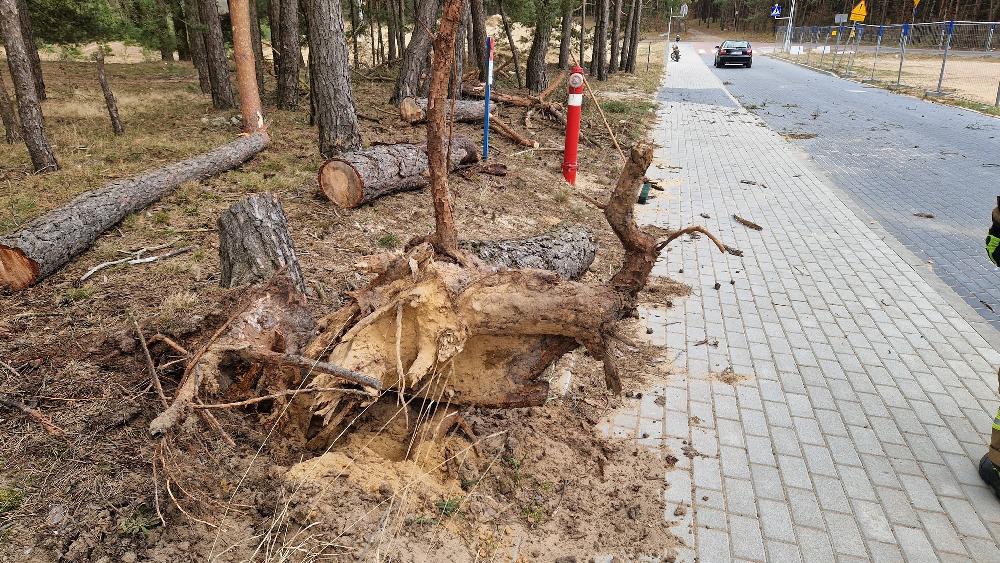 Na szczęście w zdarzeniu nikt nie ucierpiał. Służby apelują o ostrożność, ponieważ silny wiatr nadal może powodować zagrożenia.