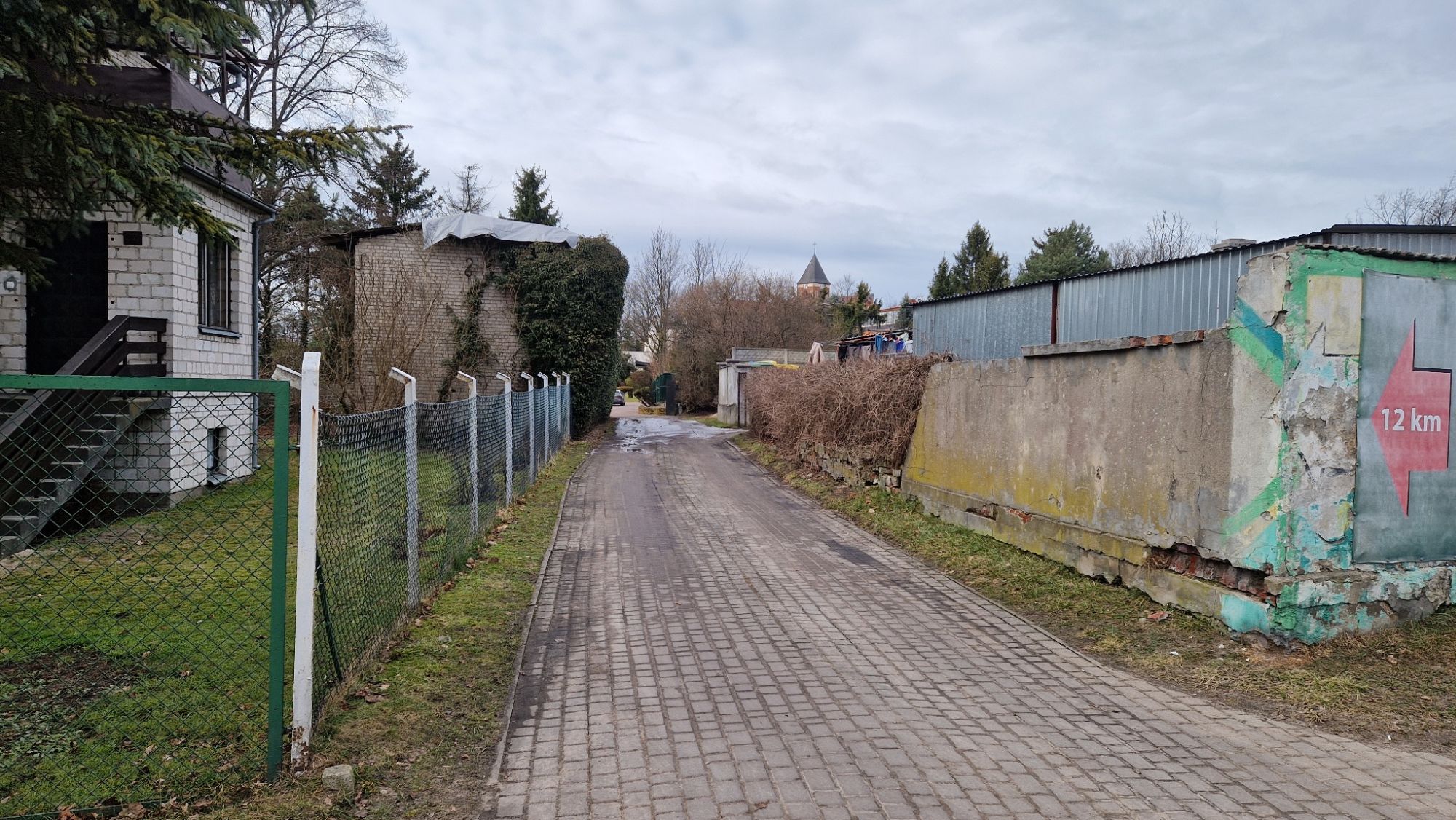 Wjazd na "tryftę" od strony ul. Szkolnej, od strony byłej fabryki mebli.