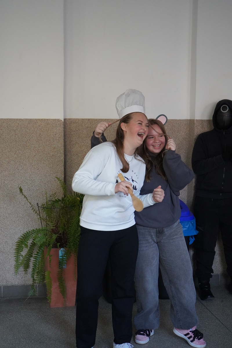 W miniony piątek, 31. 10. 2025 r. szkolne korytarze wyglądały jak plan filmowy – superbohaterowie, gwiazdy muzyki, postacie z bajek i filmów… wszędzie kolor, energia i masa świetnych pomysłów!